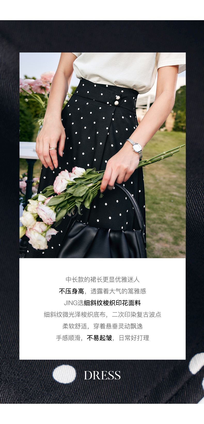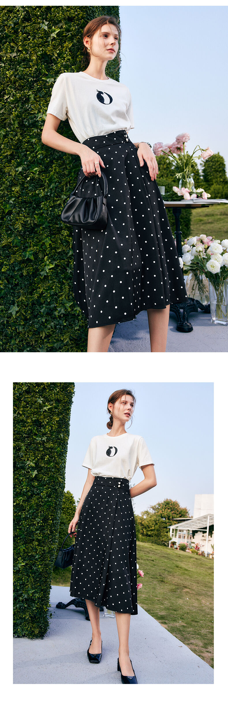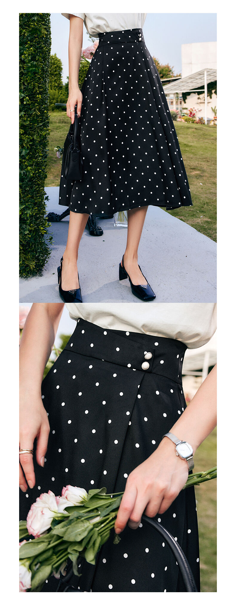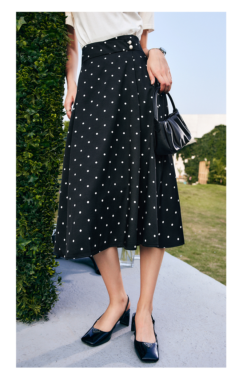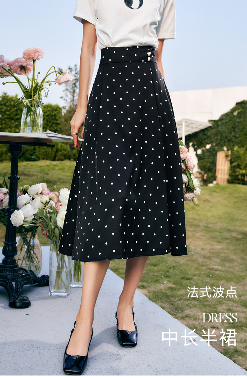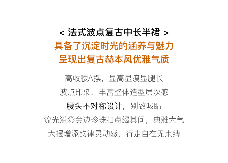 欧芮儿OLrain法式波点半身裙女夏季2022新款复古赫本风a字中长裙