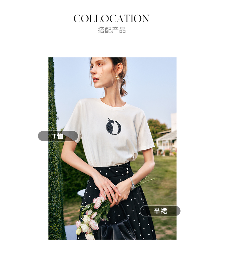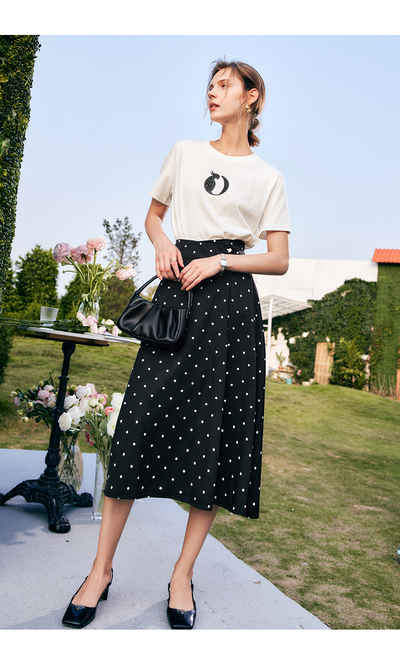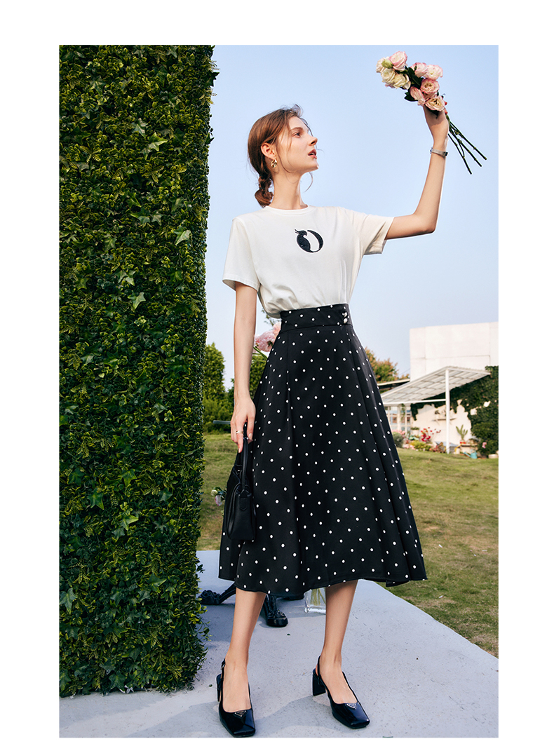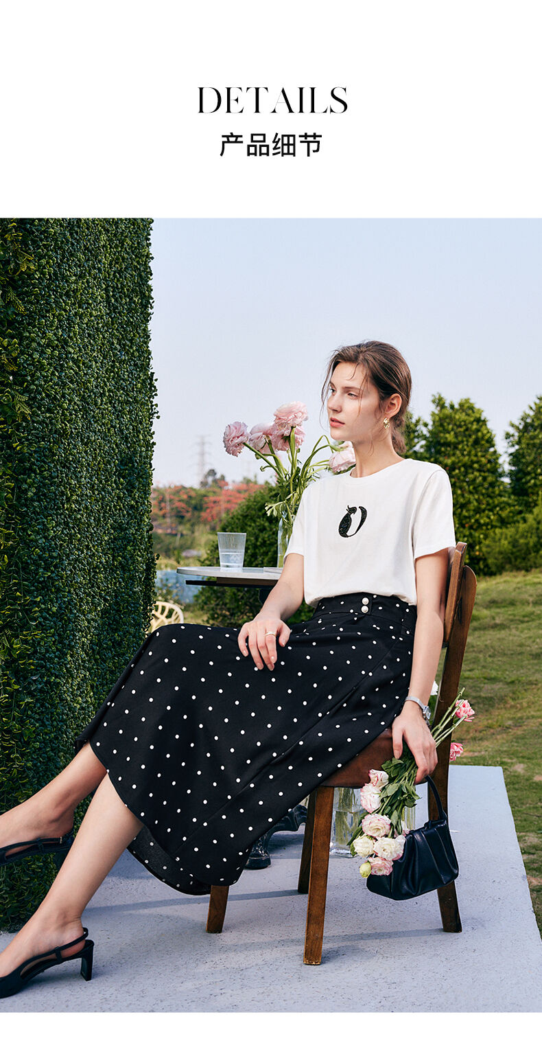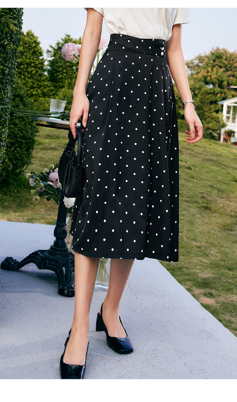 欧芮儿OLrain法式波点半身裙女夏季2022新款复古赫本风a字中长裙