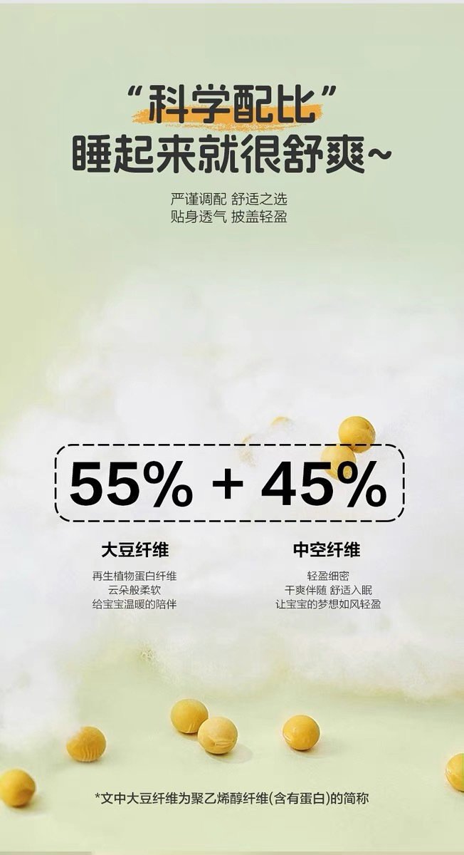 ✅填充55%天然大豆纤维,绿色安全