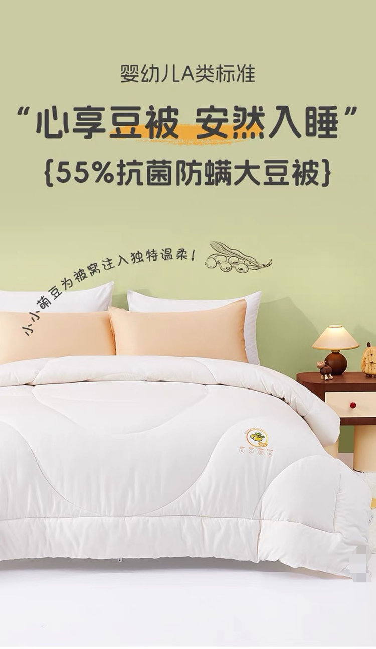 【多妈团购 水家大豆纤维抗菌被子(水家剪标款)】柔软舒适,透气轻盈,加了20大豆纤维 软软糯糯,绿色安全,抑菌防螨,A类母婴级用料,温暖舒服-圆圆家纺