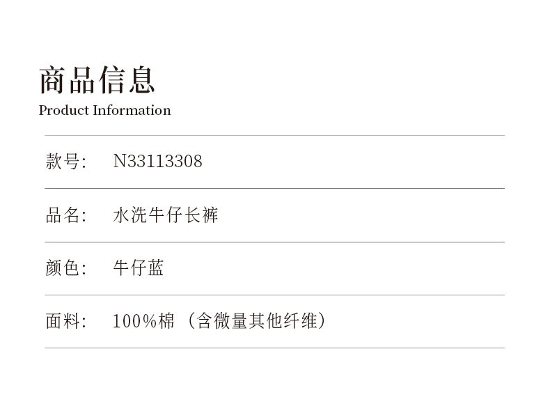 oldcolour欧珂春秋季时尚休闲纯棉锥形水洗牛仔长裤女N33113308