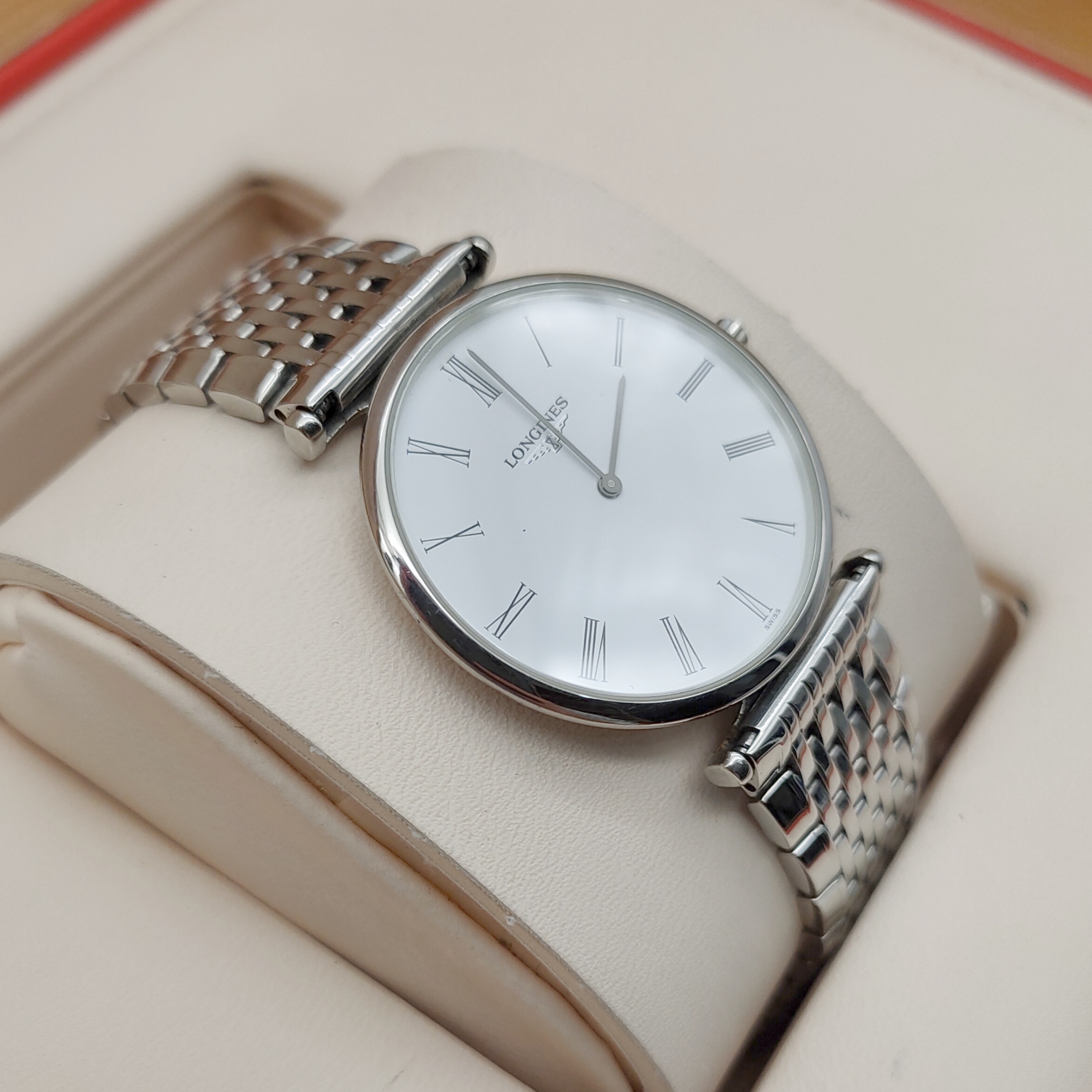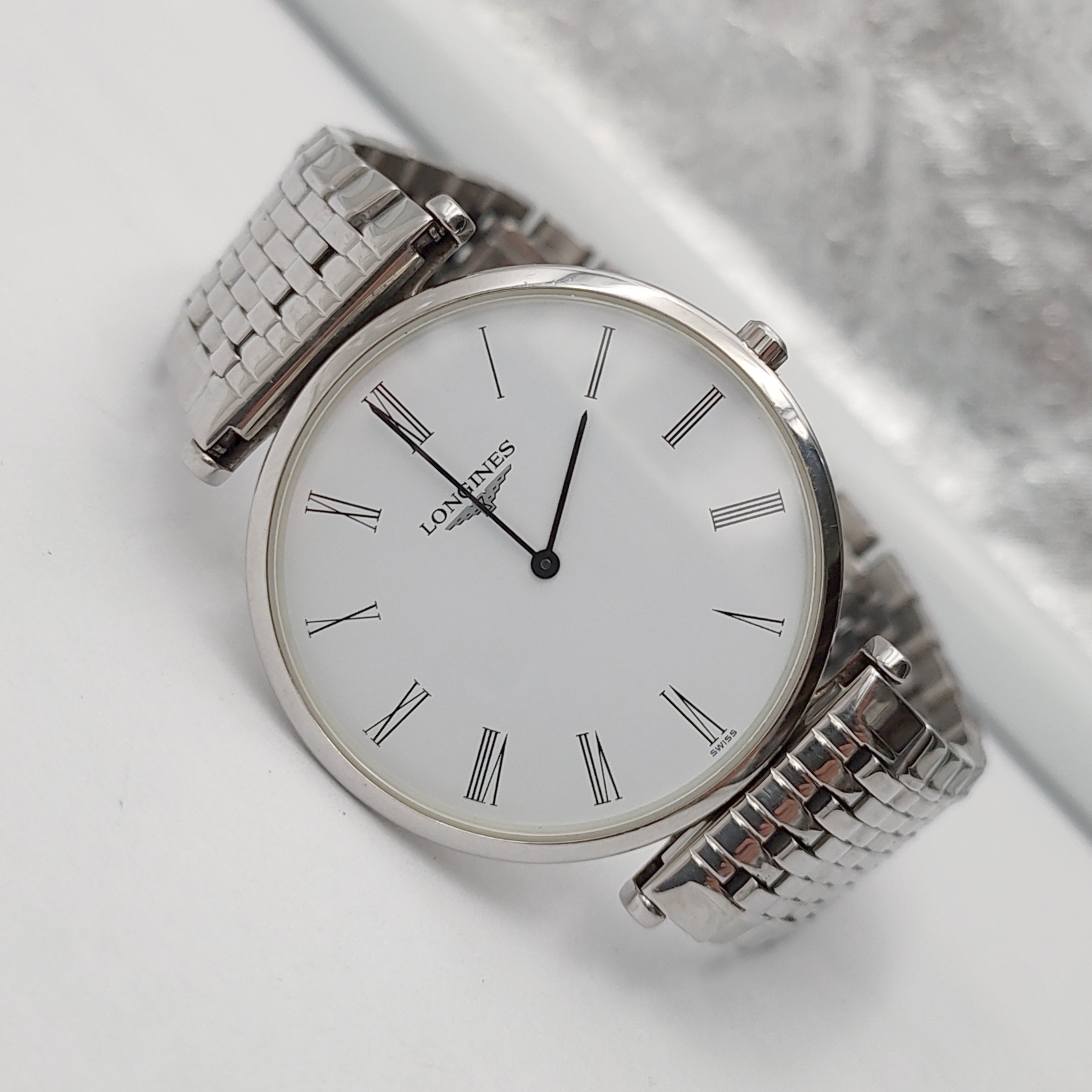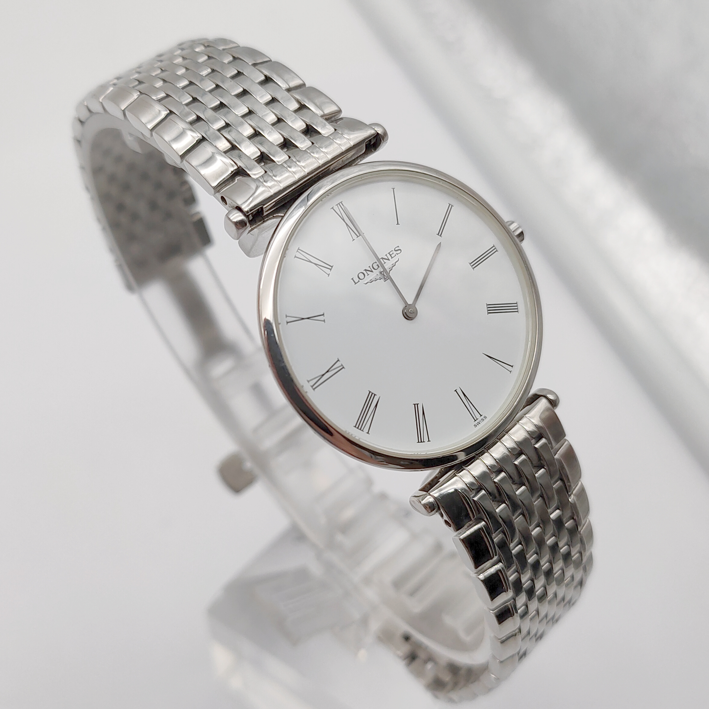 浪琴优雅系列L4.709.4.11.6中性石英表,33mm表径,白色表盘、罗马数字刻度,精钢表壳表链,9成新,附件无,专柜价8700,现好价