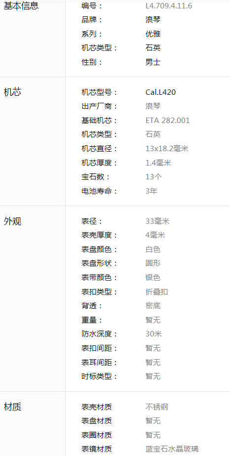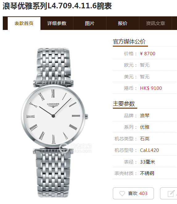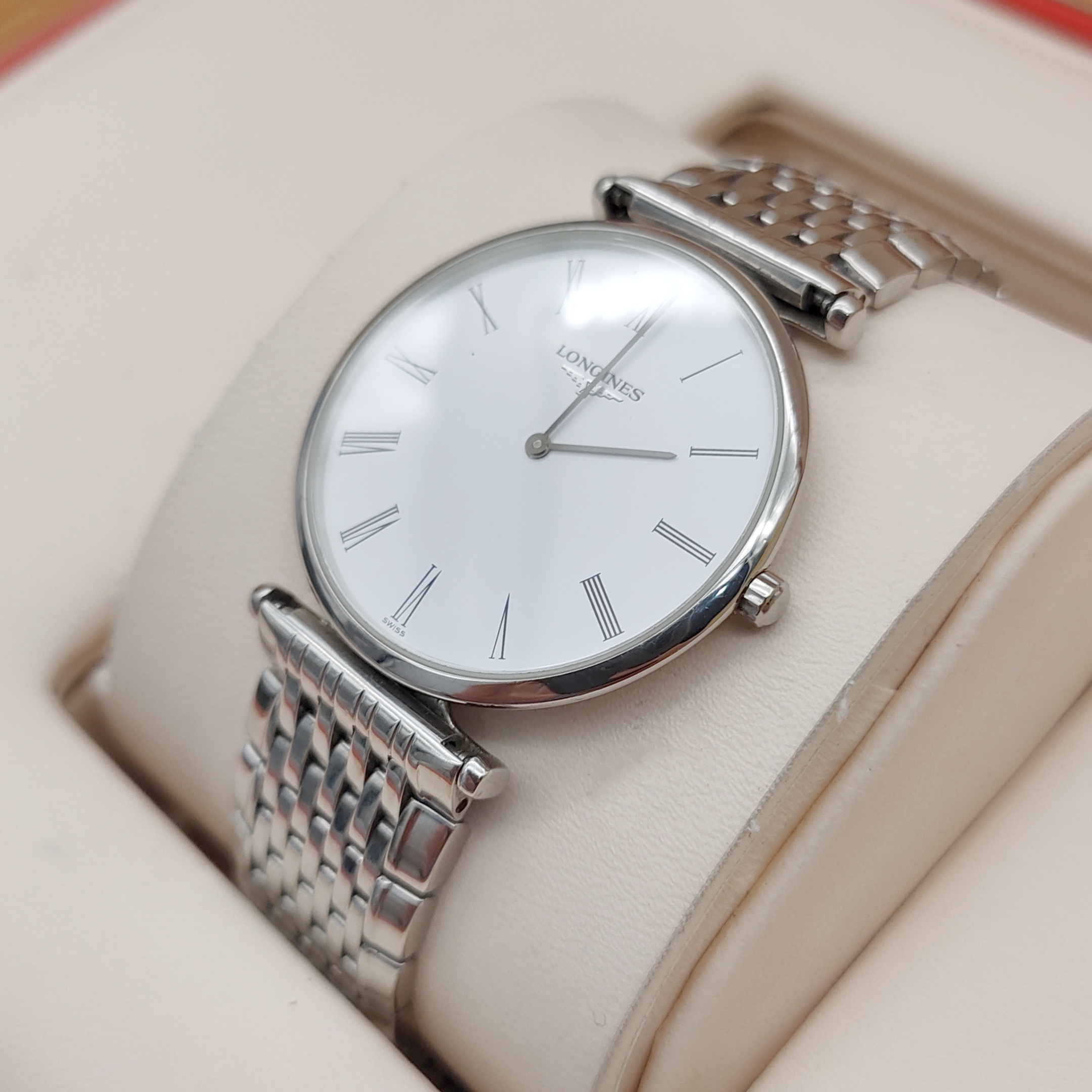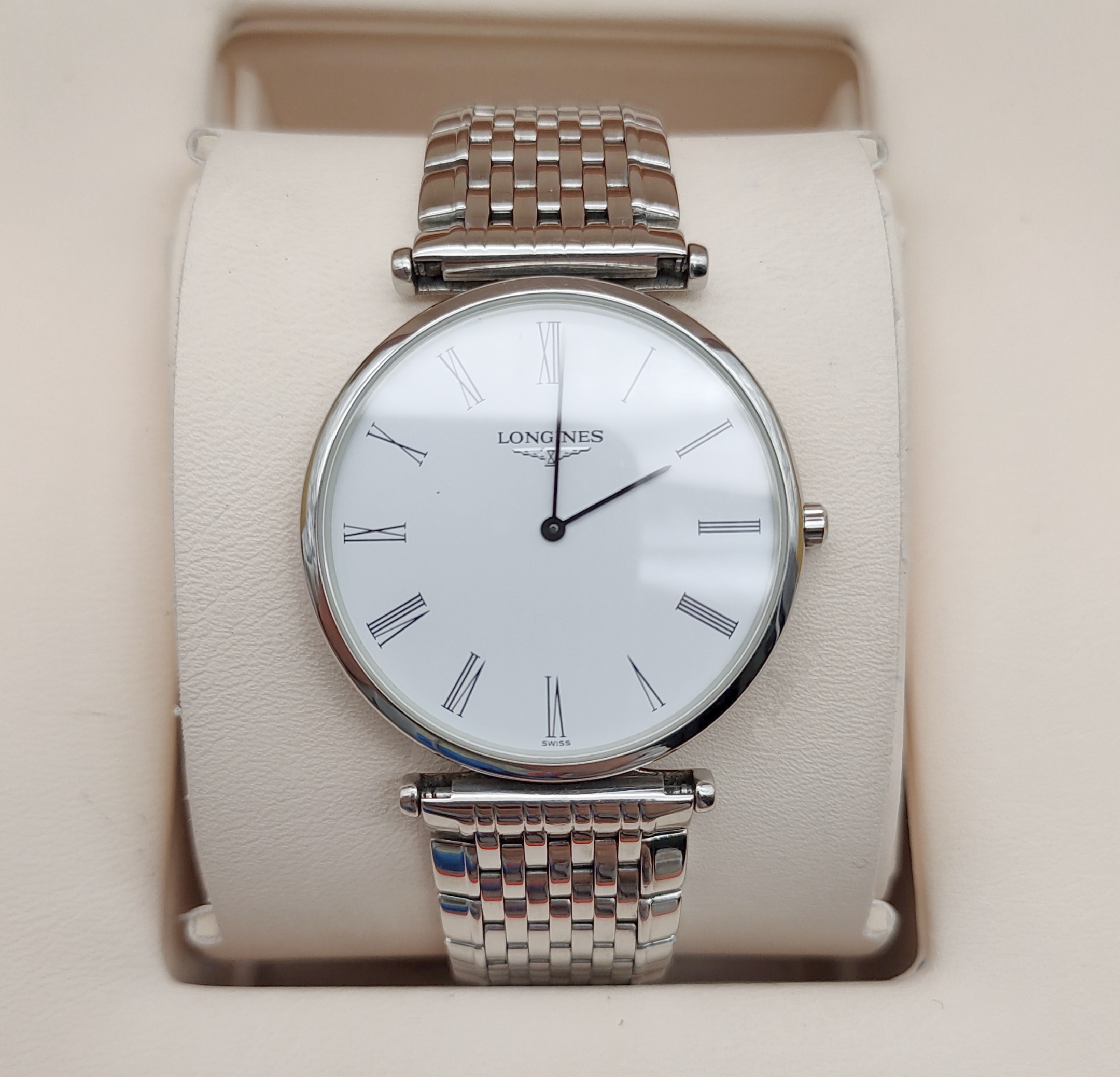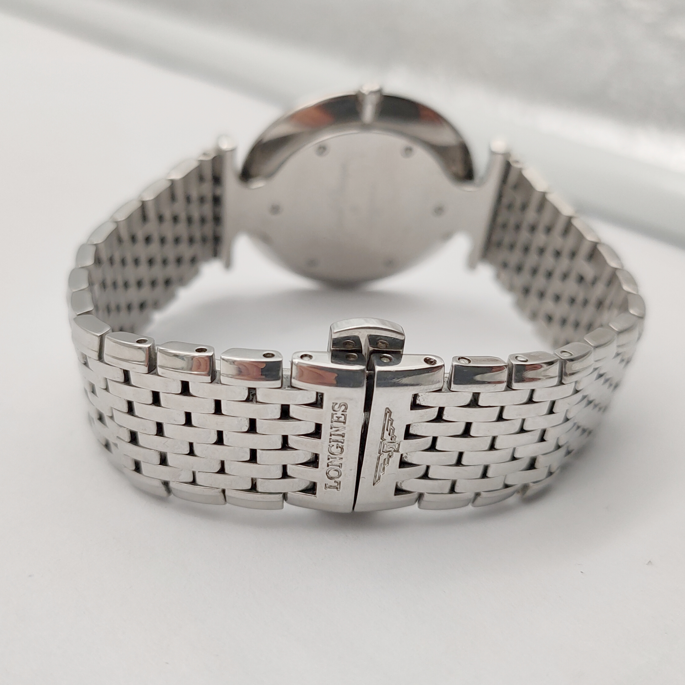 浪琴优雅系列L4.709.4.11.6中性石英表,33mm表径,白色表盘、罗马数字刻度,精钢表壳表链,9成新,附件无,专柜价8700,现好价