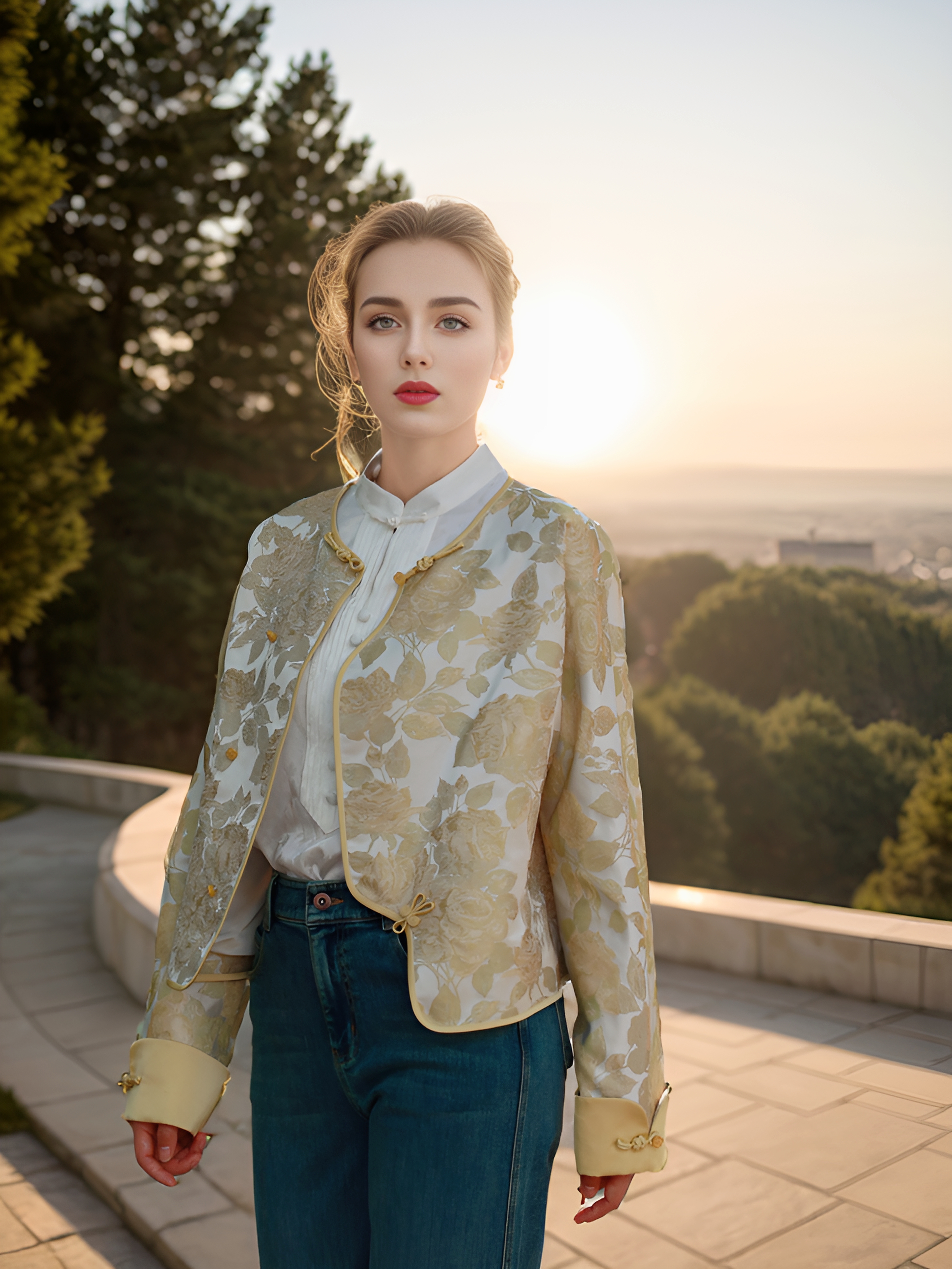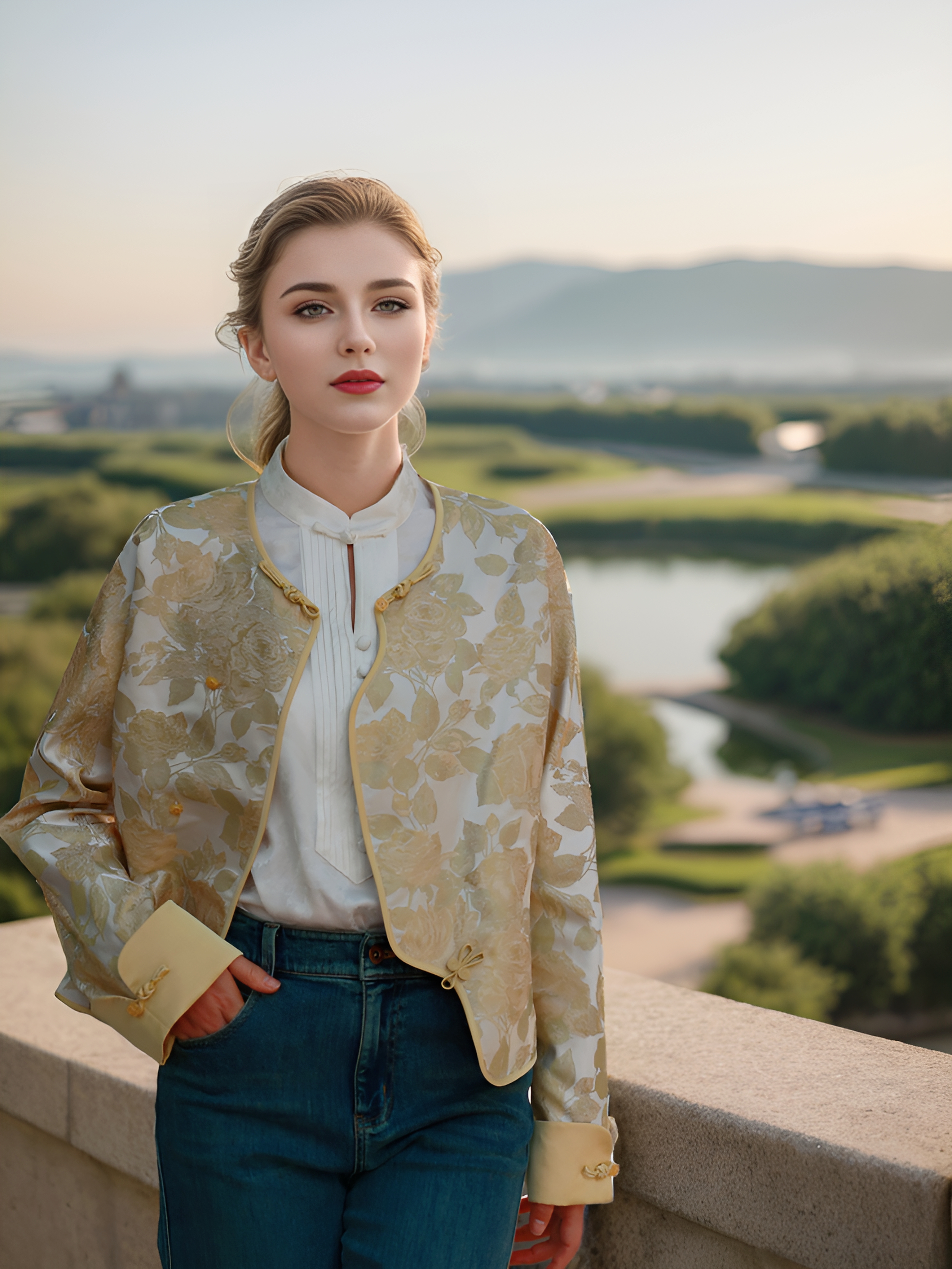 面料:黄玫瑰复古记忆丝宋锦工艺