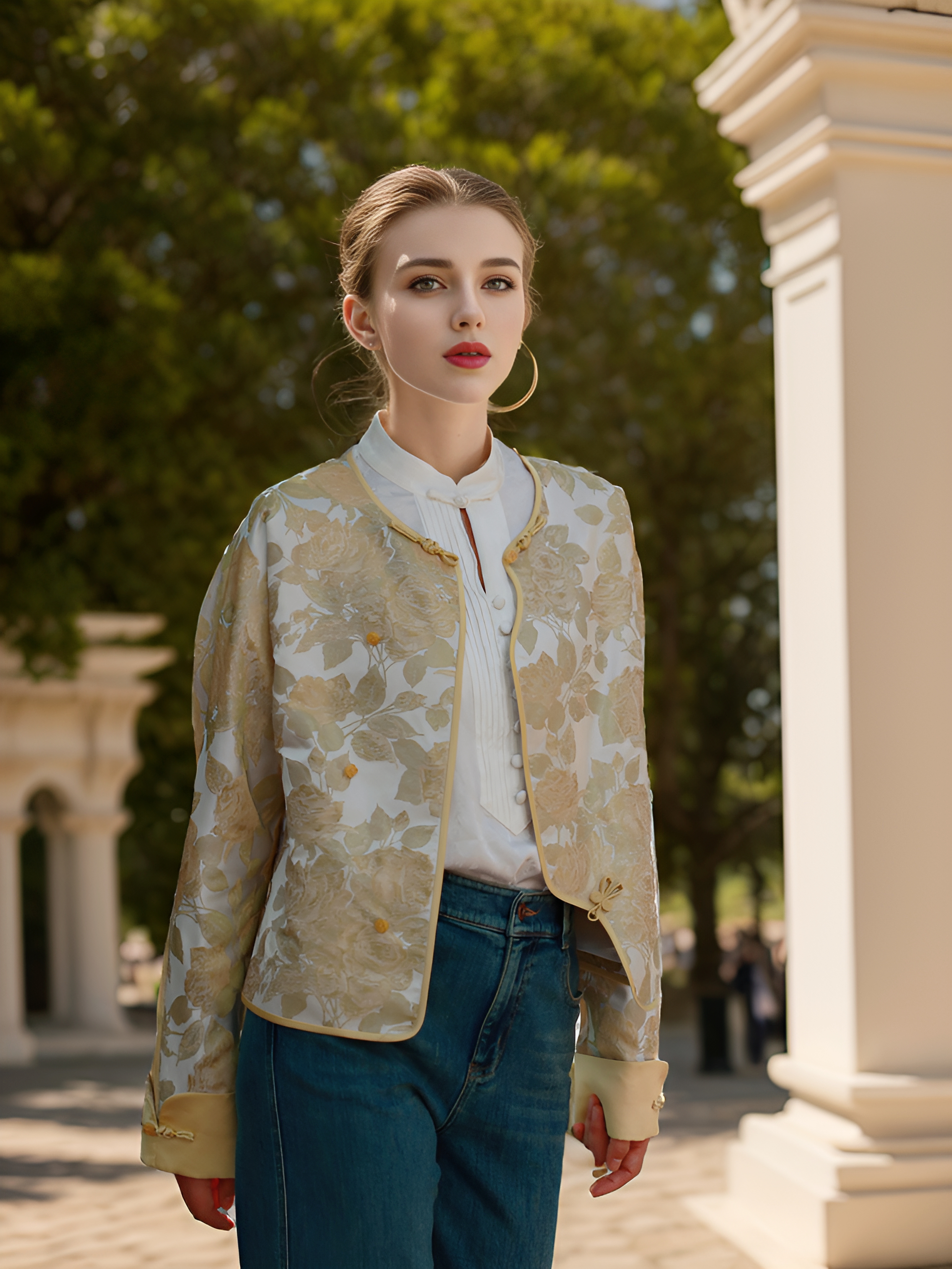 商品:Anica HN 新国风不对称门襟袖拼色外套