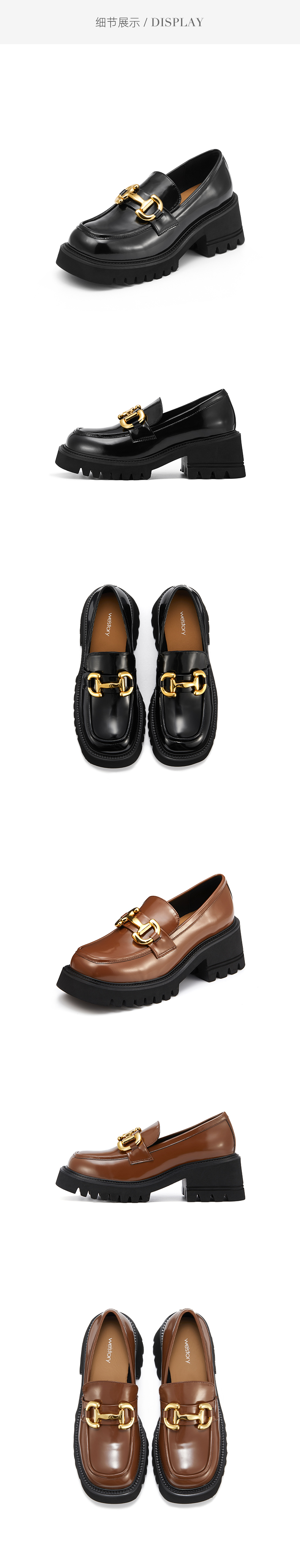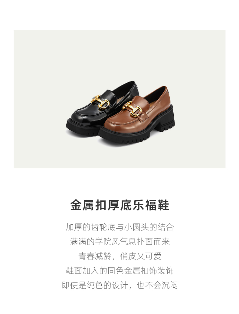 westory厚底乐福鞋增高纯色英伦风单鞋质感真皮松糕底女鞋一脚蹬S22AM54211