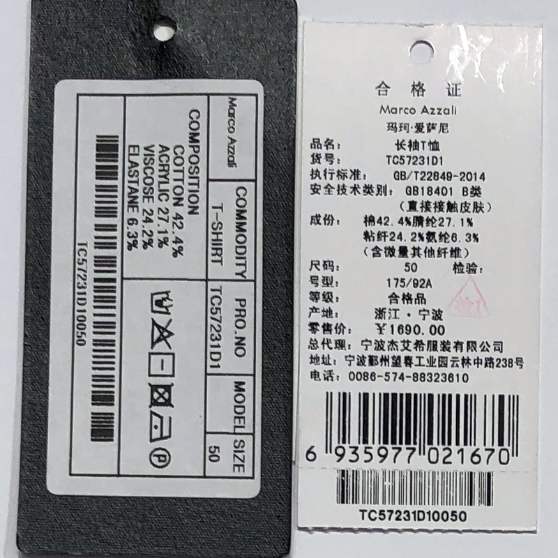 Marco Azzali一款2色长袖T恤TC57231A1/D1