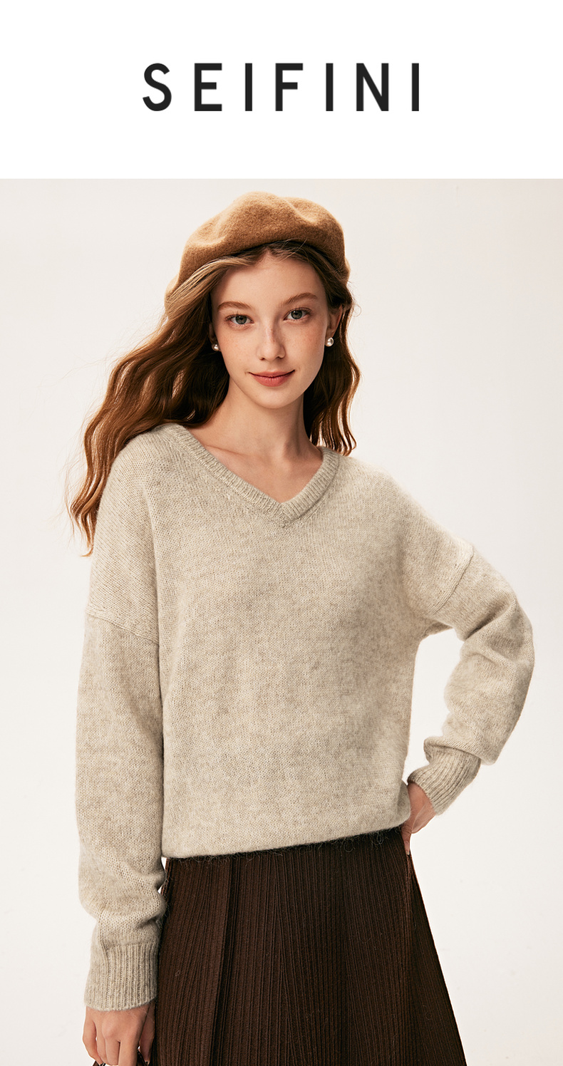 【严选】诗凡黎冬基础百搭v领套头衫7E9133121