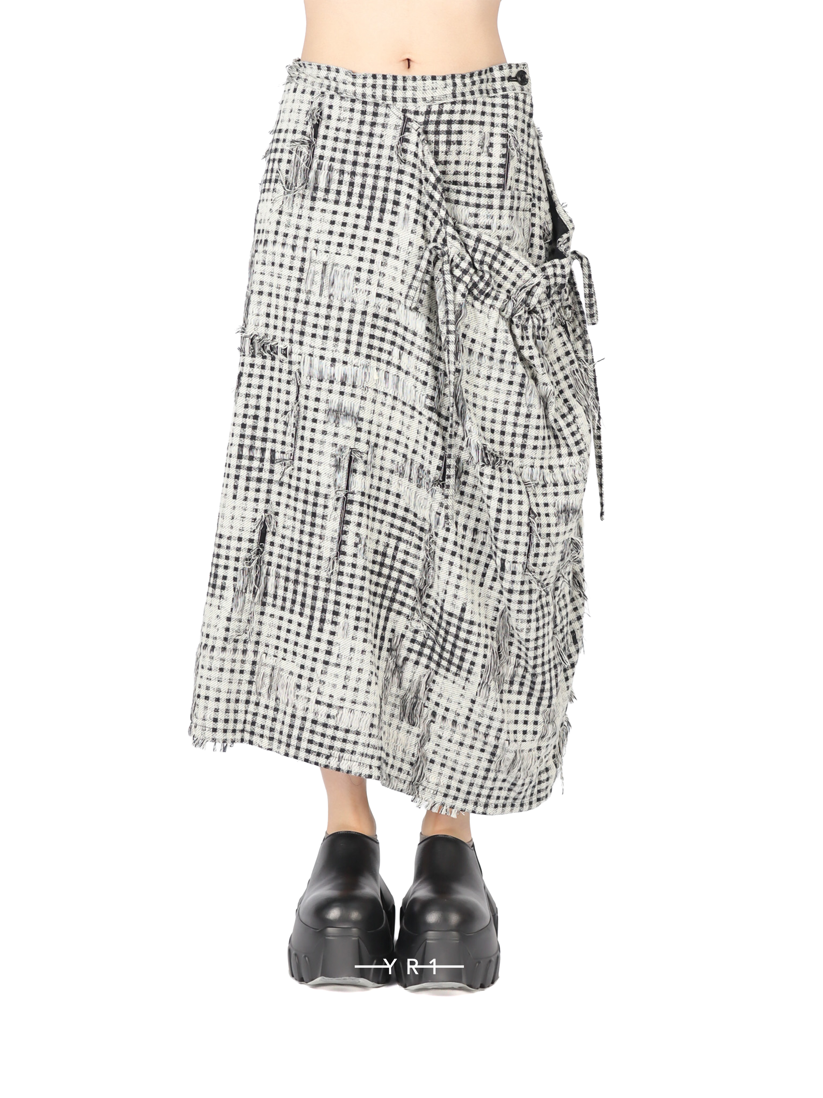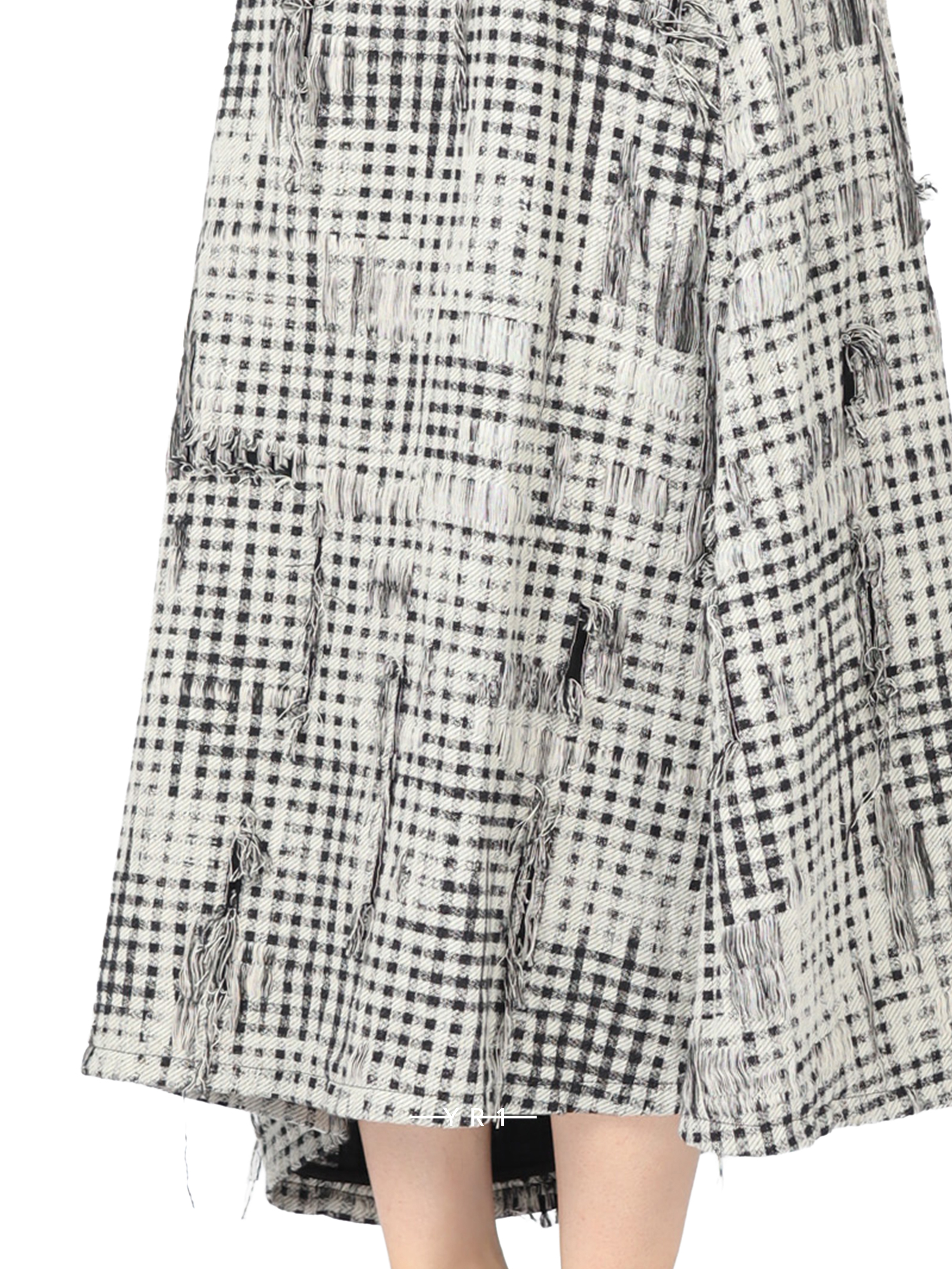 采用独特的格纹图案,随机分布的格子纹和提花面料营造出别具一格的粗布质感,尽显独特风范。调节侧边抽绳即可打造褶裥效果。请小心轻柔地处理,避免因过度拉扯而损坏缝线。