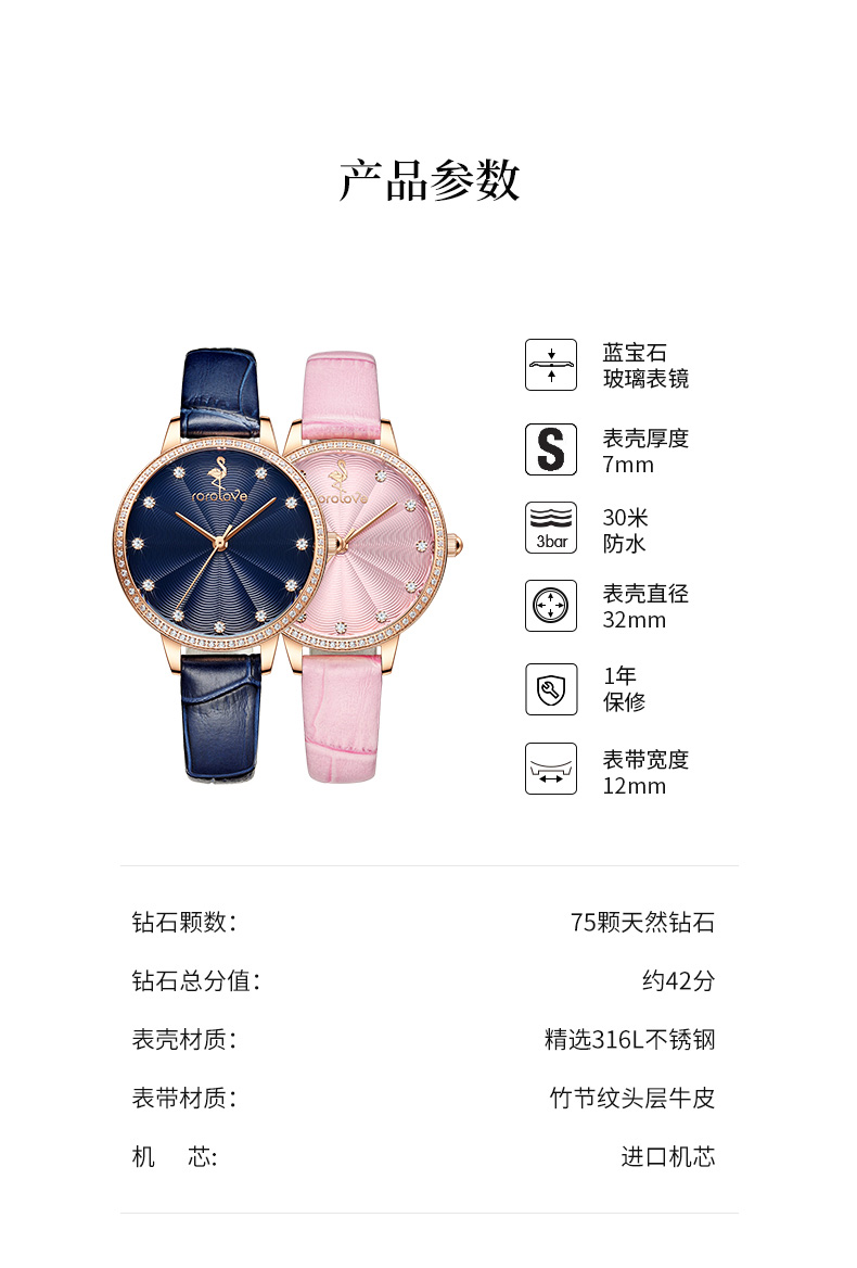 【ROROLOVE】宣爱Announce系列 天然钻石手表女款简约ins风精致女表腕表(75颗钻石)