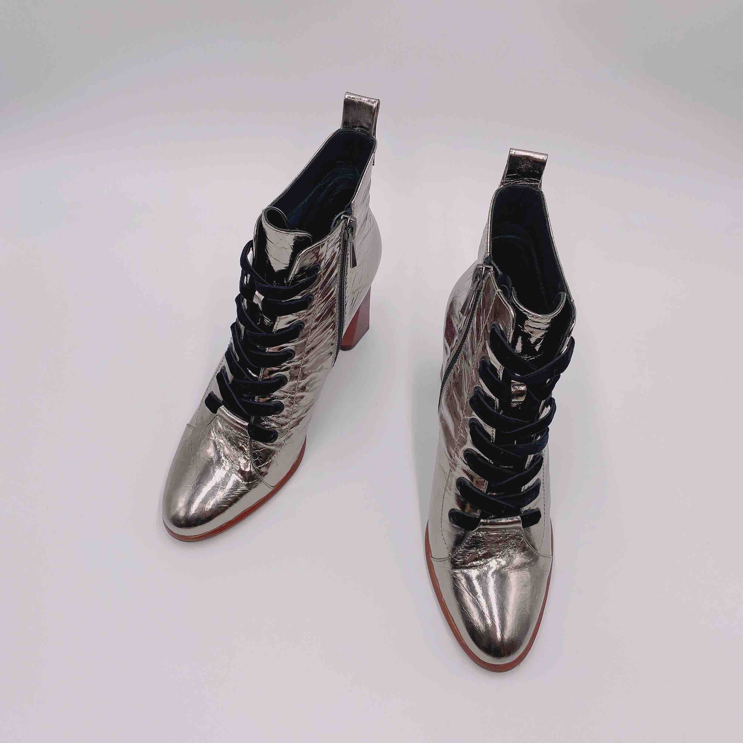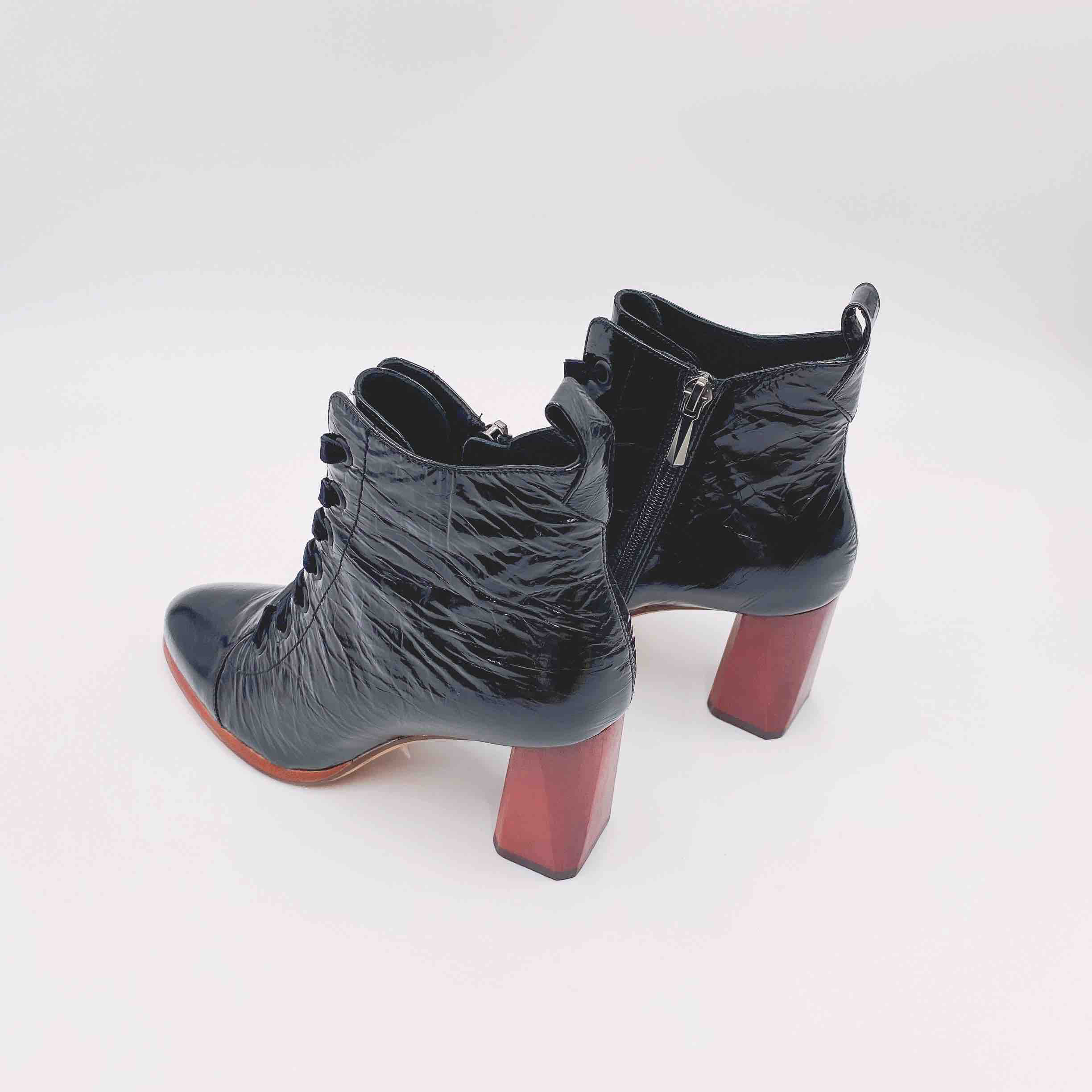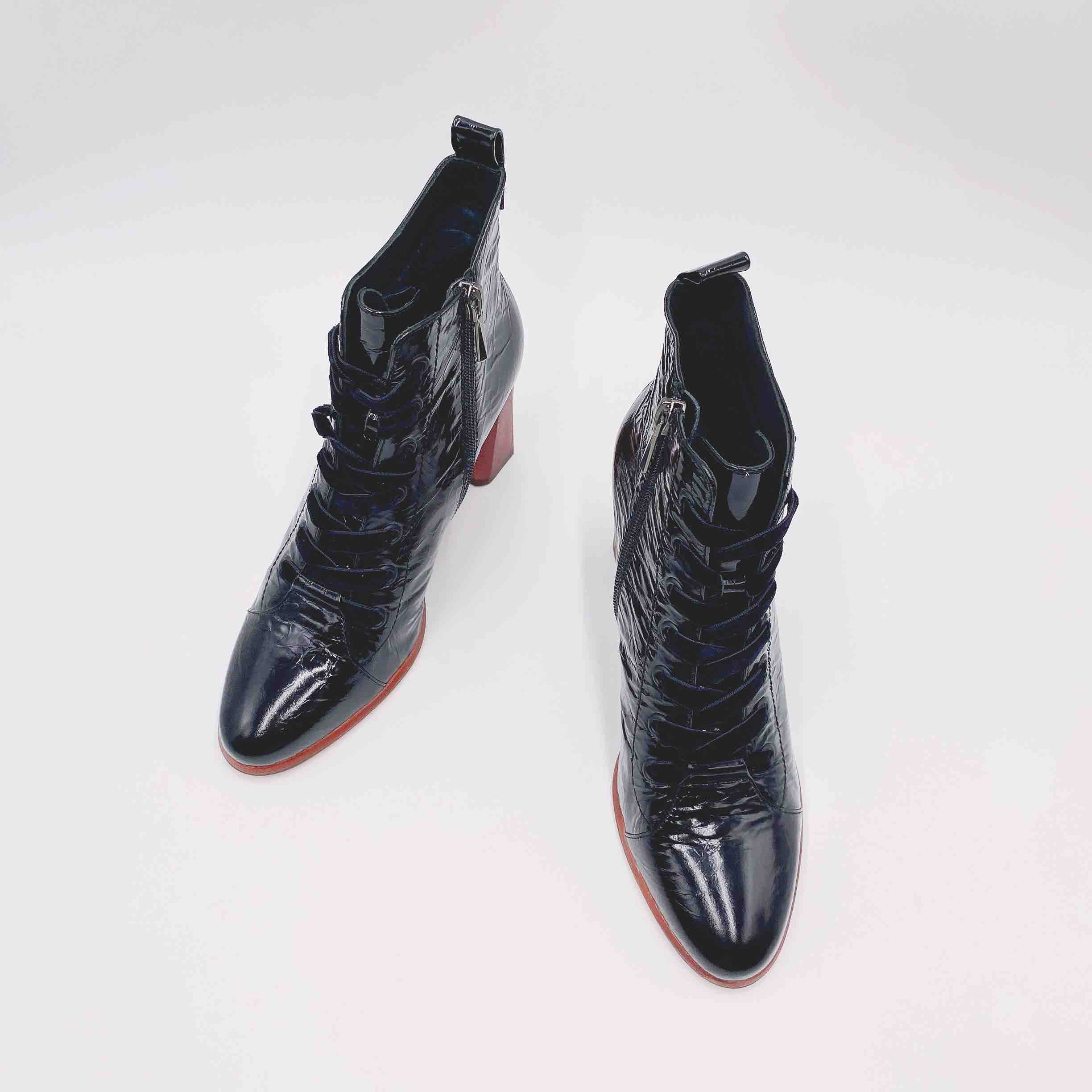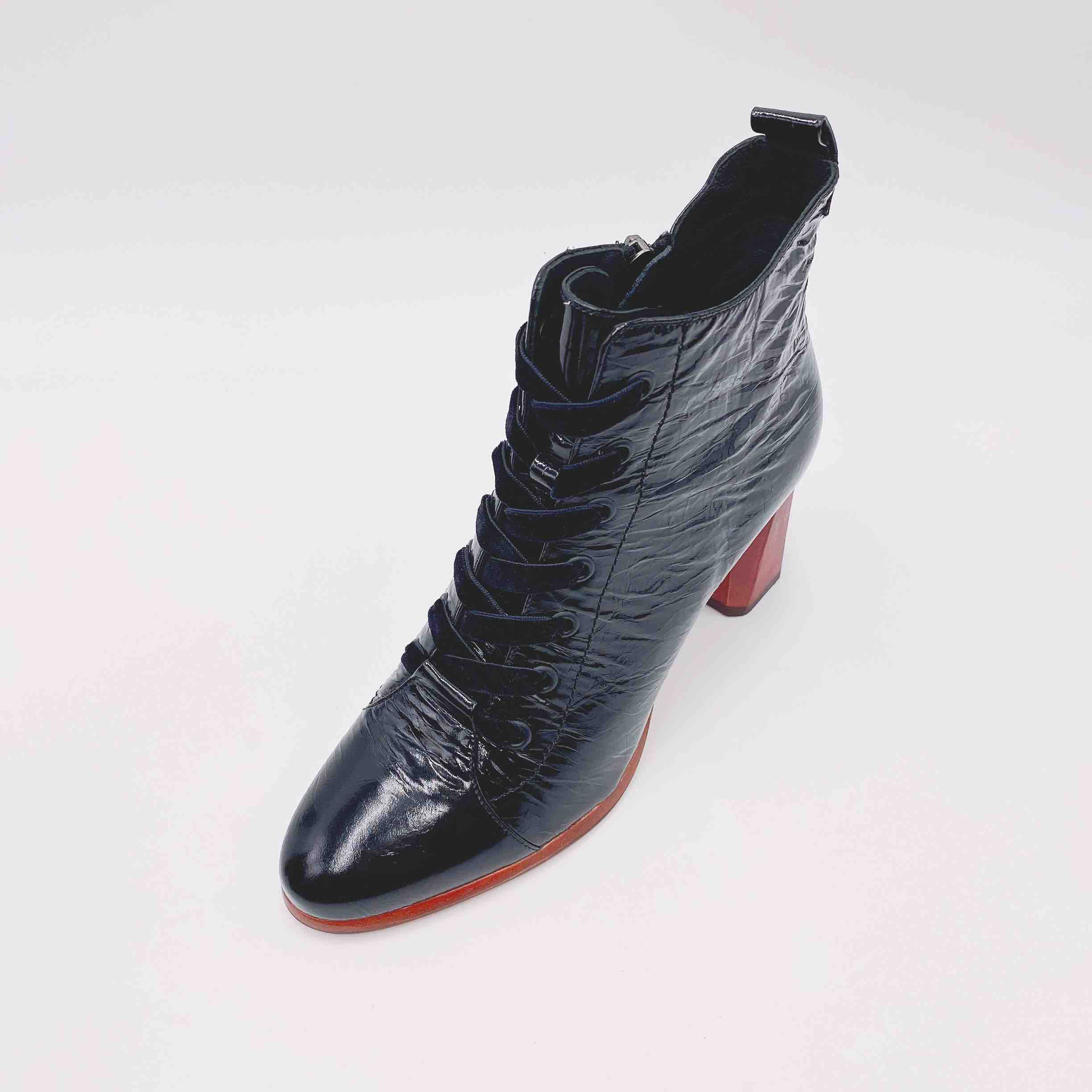 LFGJ 10702 秋季女时尚百搭尖头系带粗跟高跟短靴女