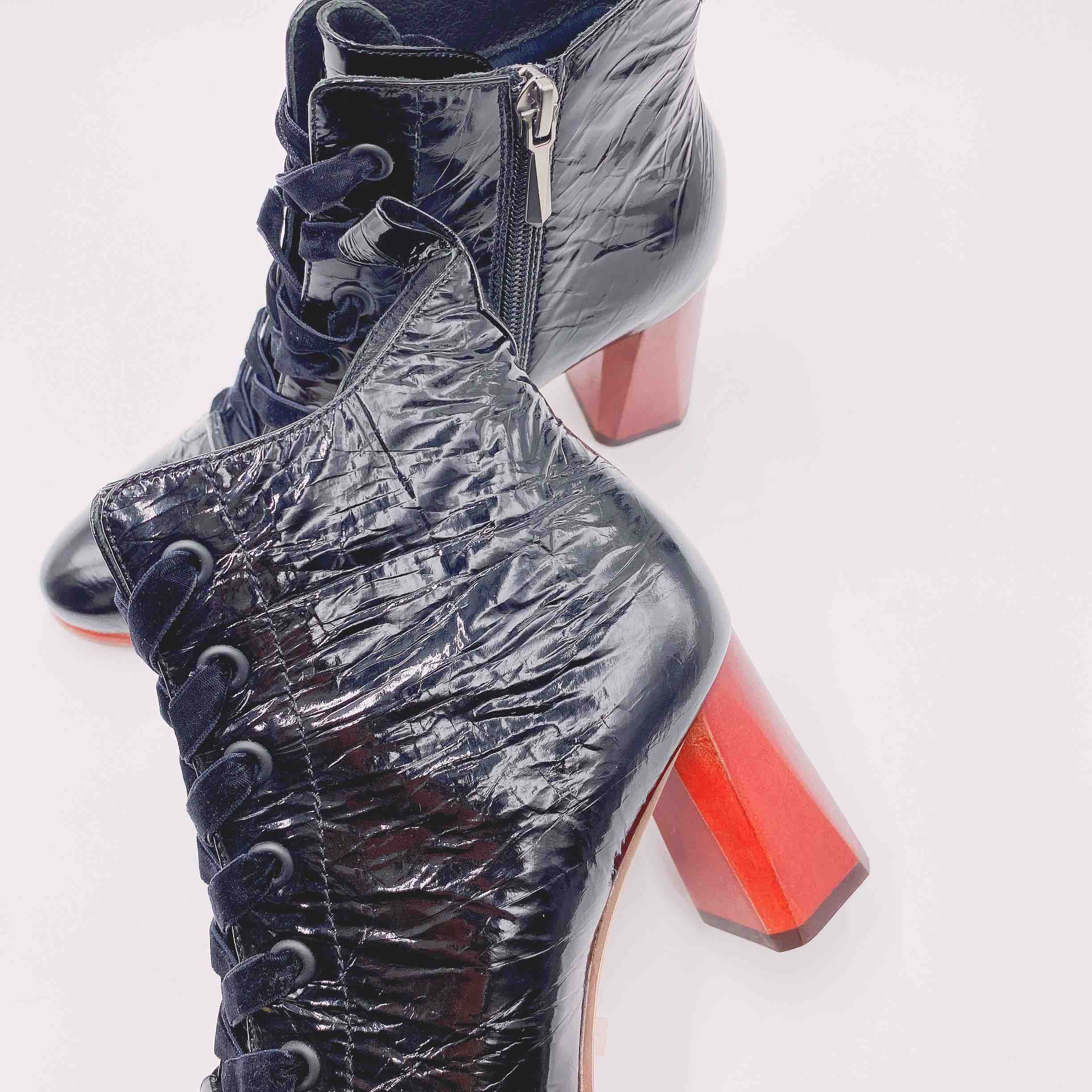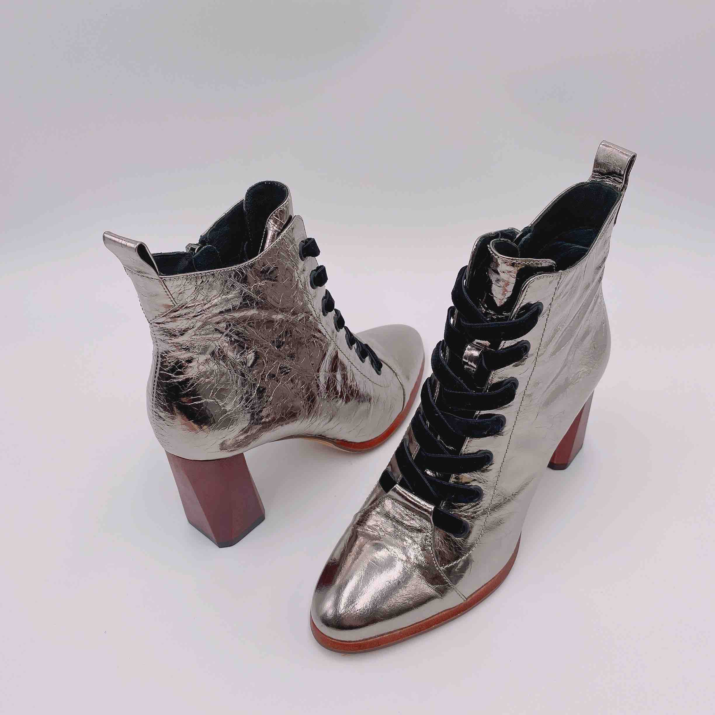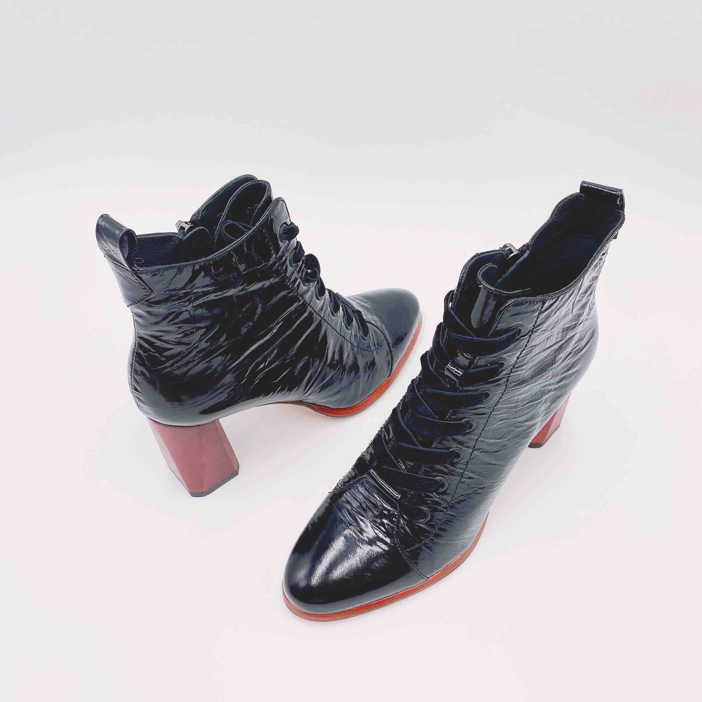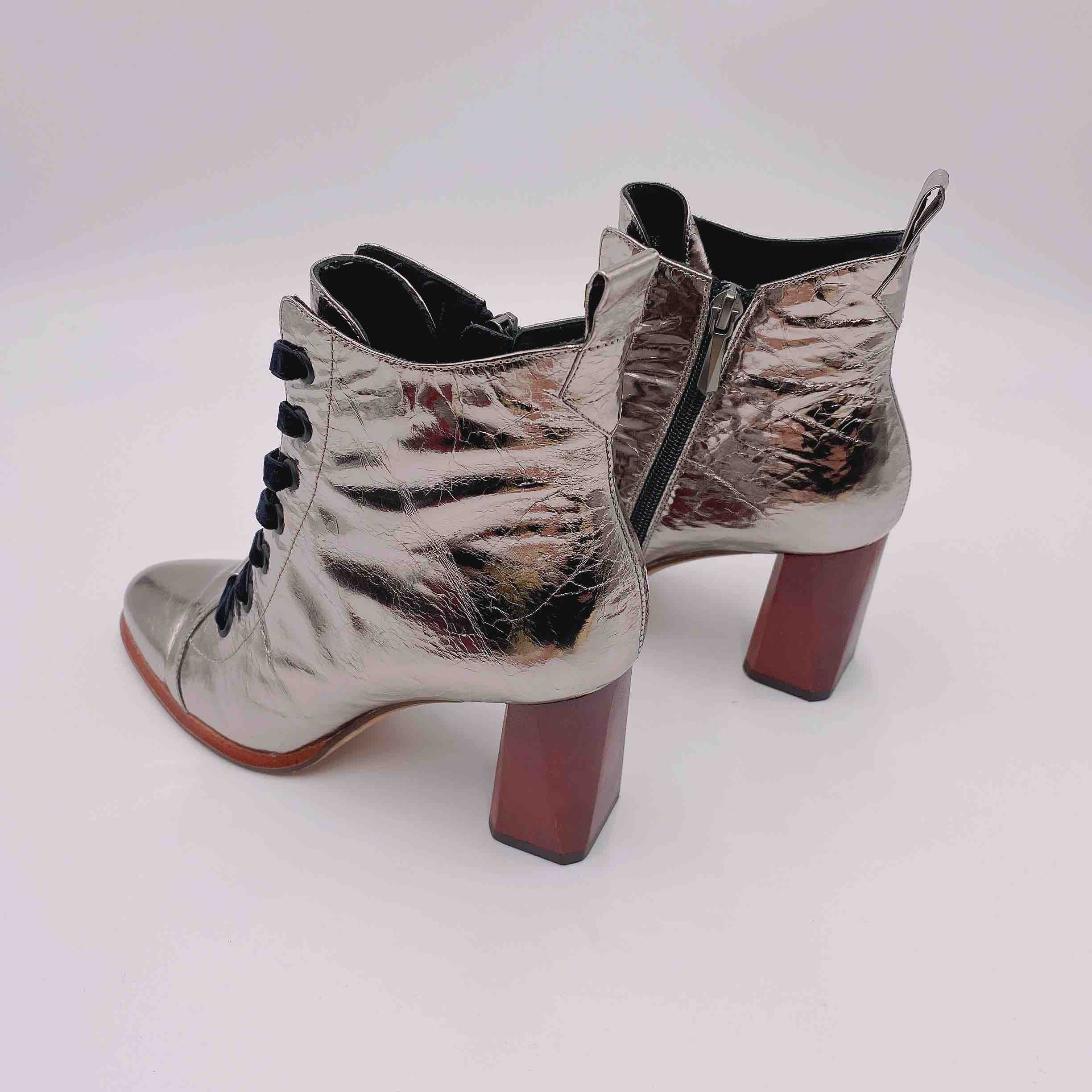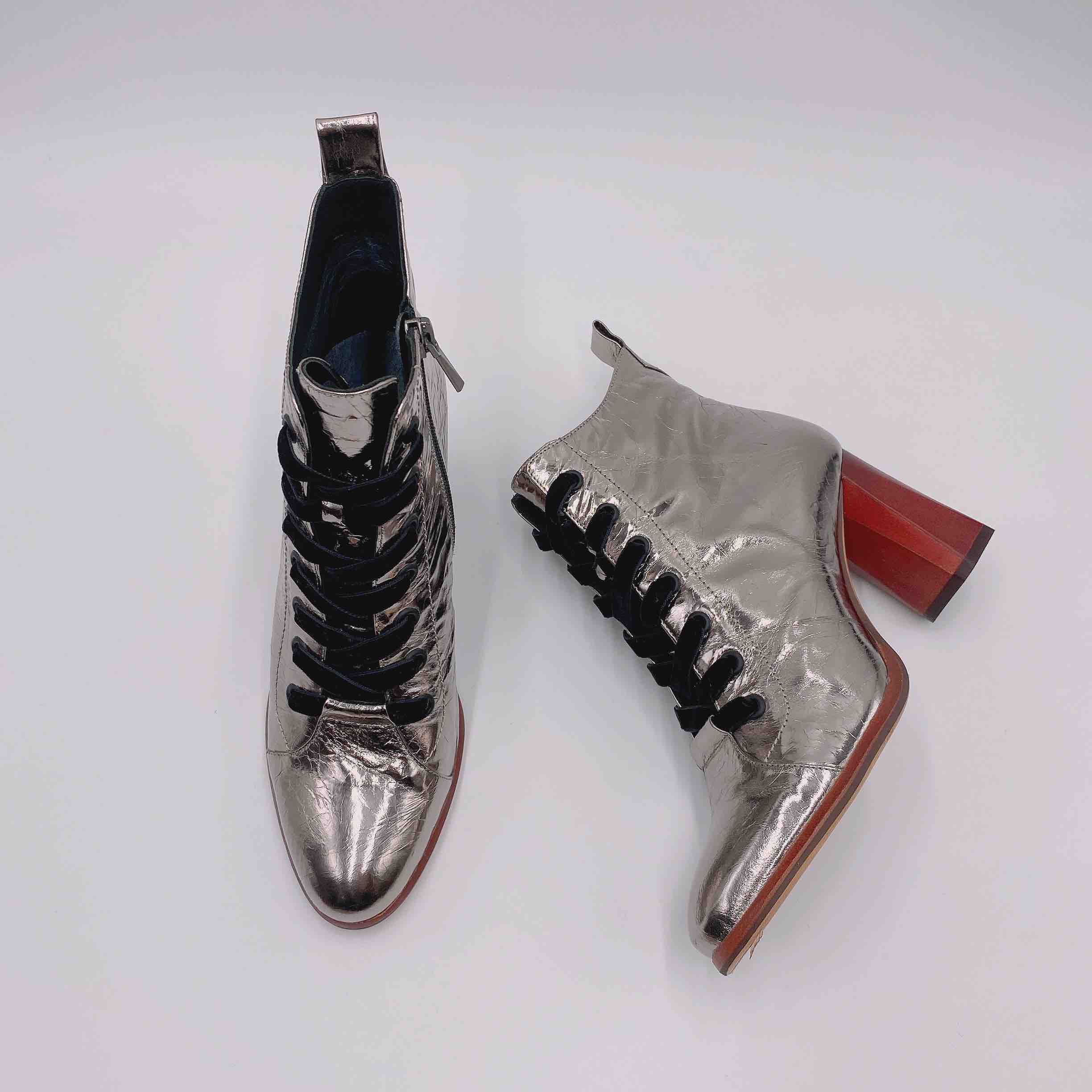 LFGJ 10702 秋季女时尚百搭尖头系带粗跟高跟短靴女