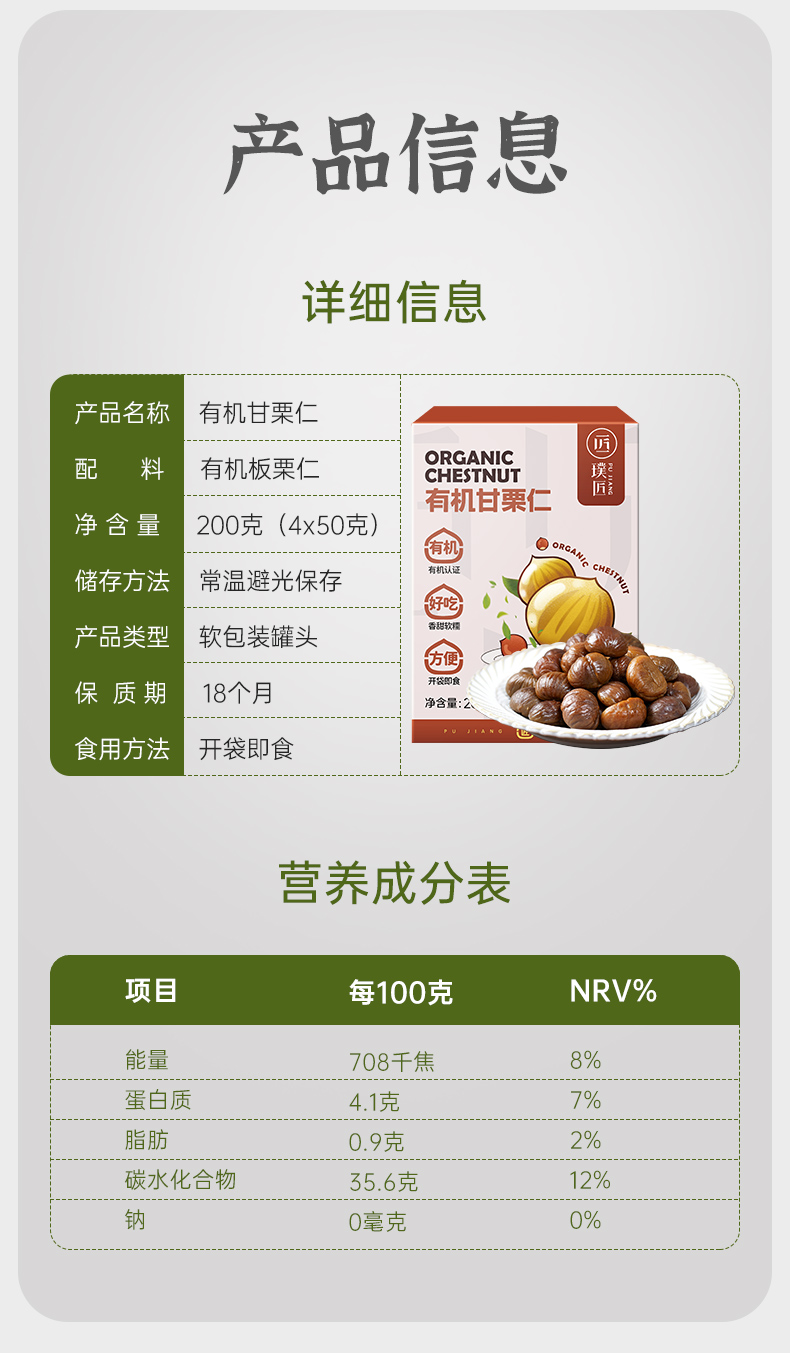 璞匠即食有机甘栗仁熟制去皮去壳软糯即食干栗子休闲零食板栗肉