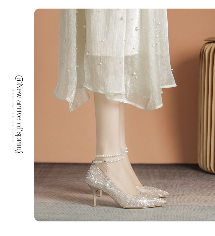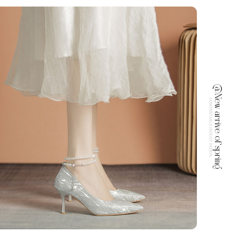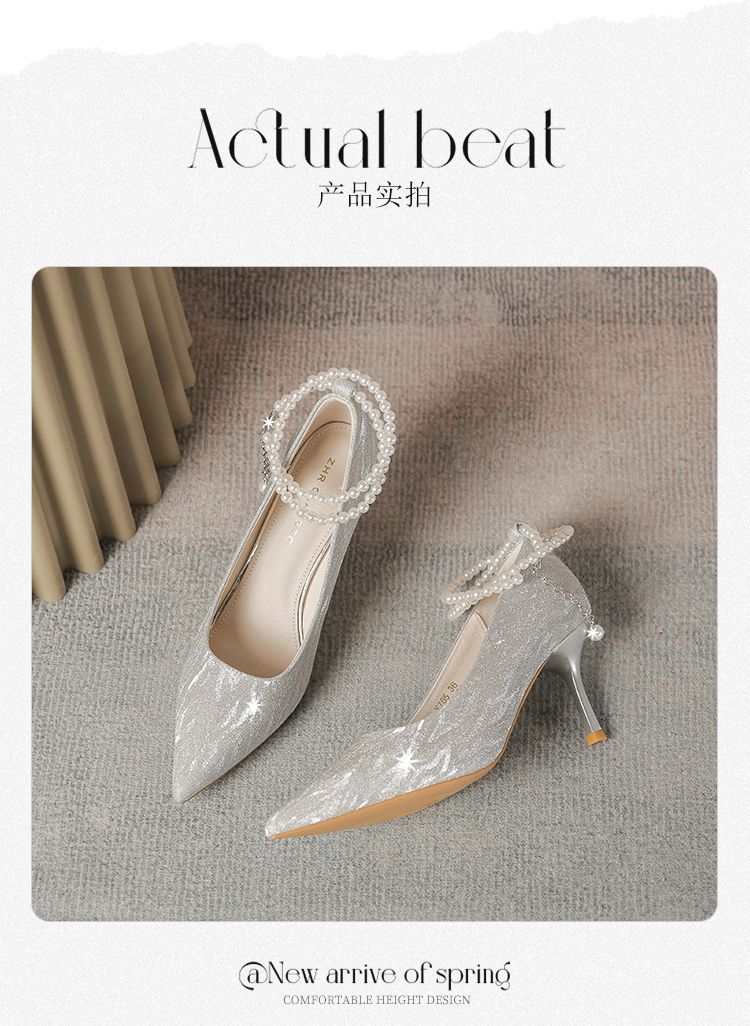 ZHR则则浅口单鞋女2024新款百搭高跟鞋子尖头透气懒人鞋ins女鞋子