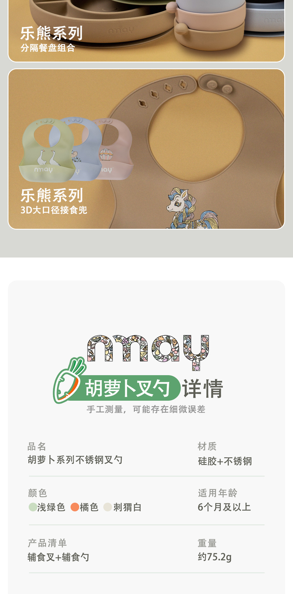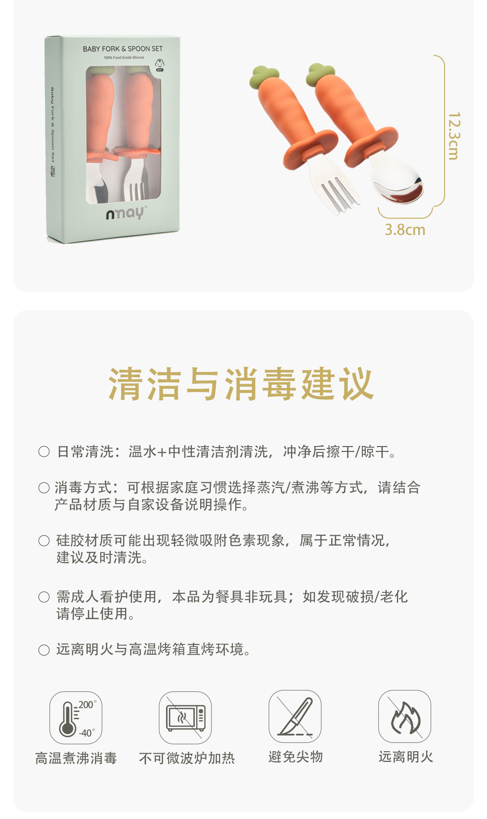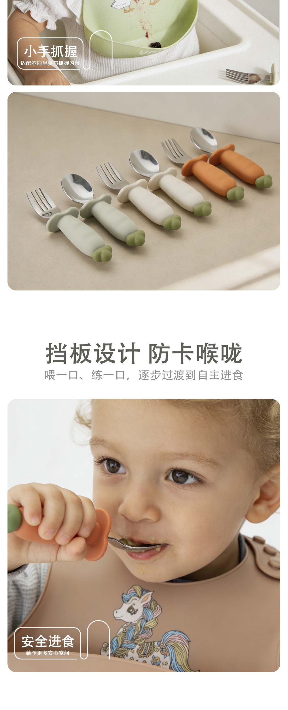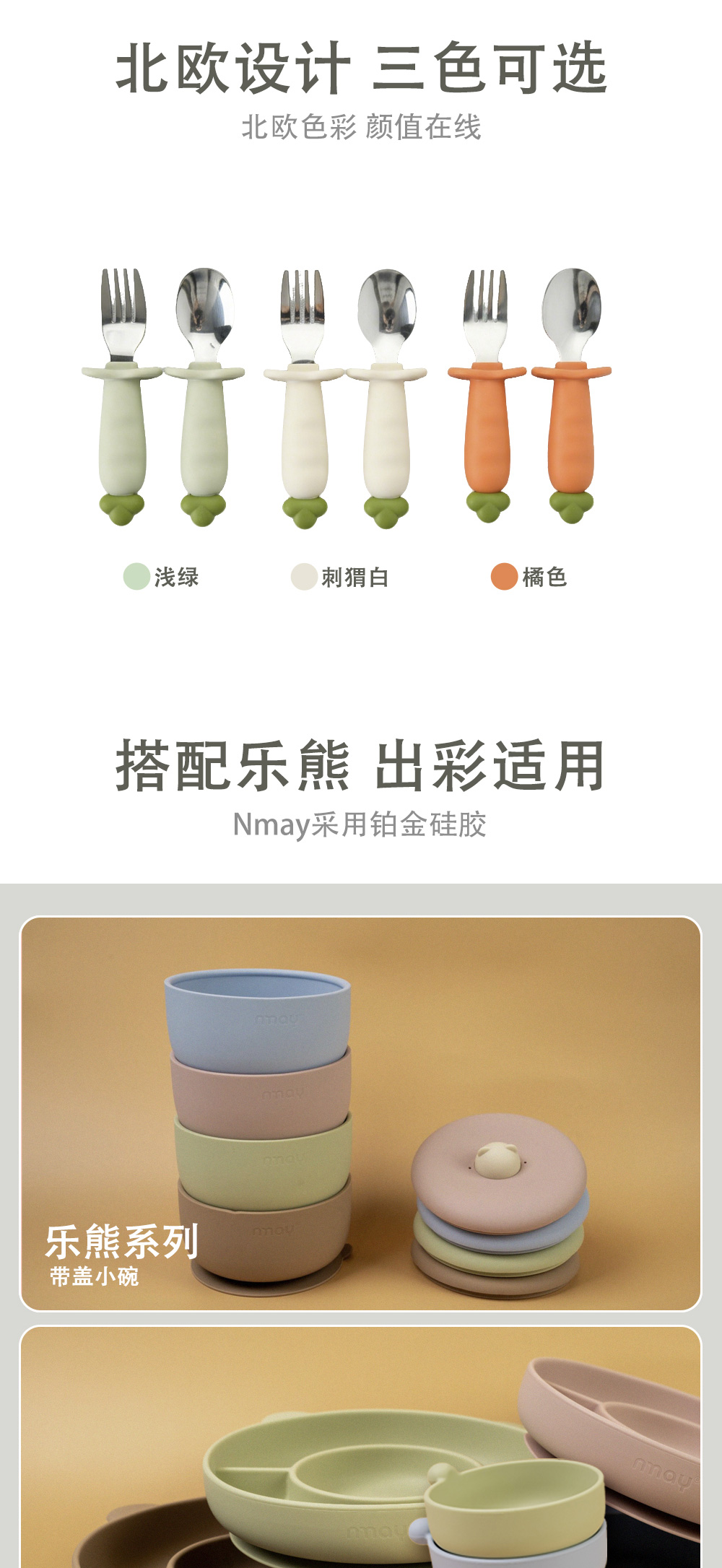 nmay 胡萝卜系列-316L不锈钢叉勺 儿童宝宝辅食餐具6月+
