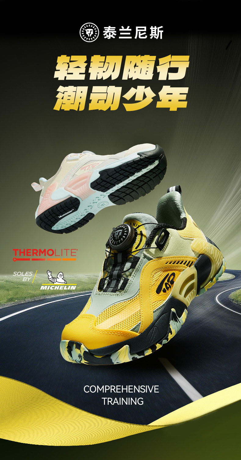 泰兰尼斯儿童运动鞋26春季新款米其林胶底男女童校园轻便跑步鞋T01D6A8731