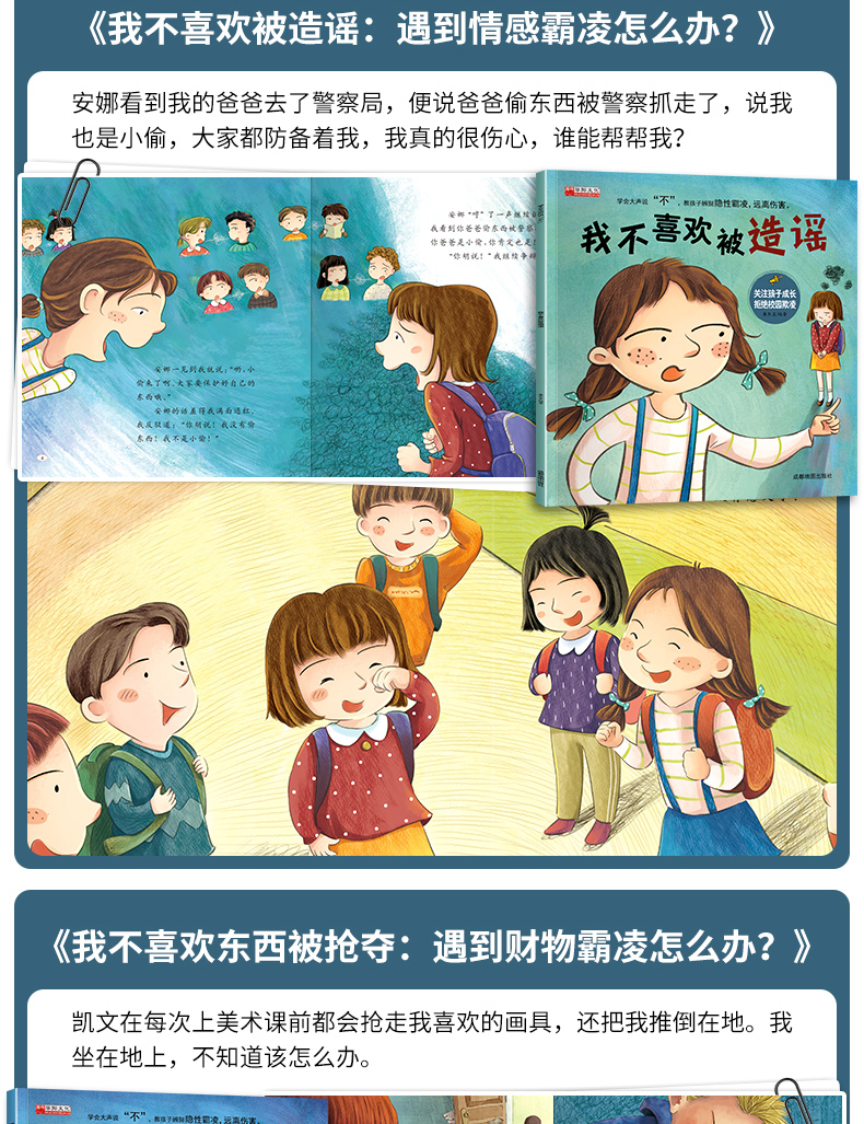 反霸凌启蒙绘本全套8册我不喜欢被嘲笑 学会大声说不自我保护儿童绘本3-6岁阅读4到8岁反抗意识早教故事 远离校园霸凌伤害