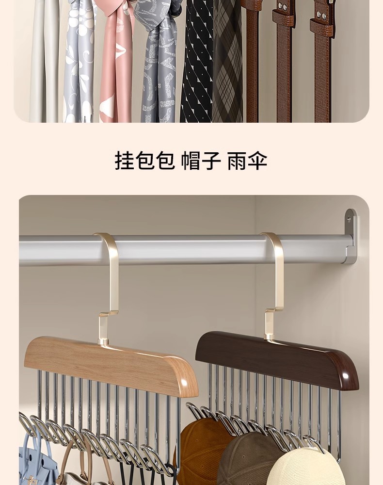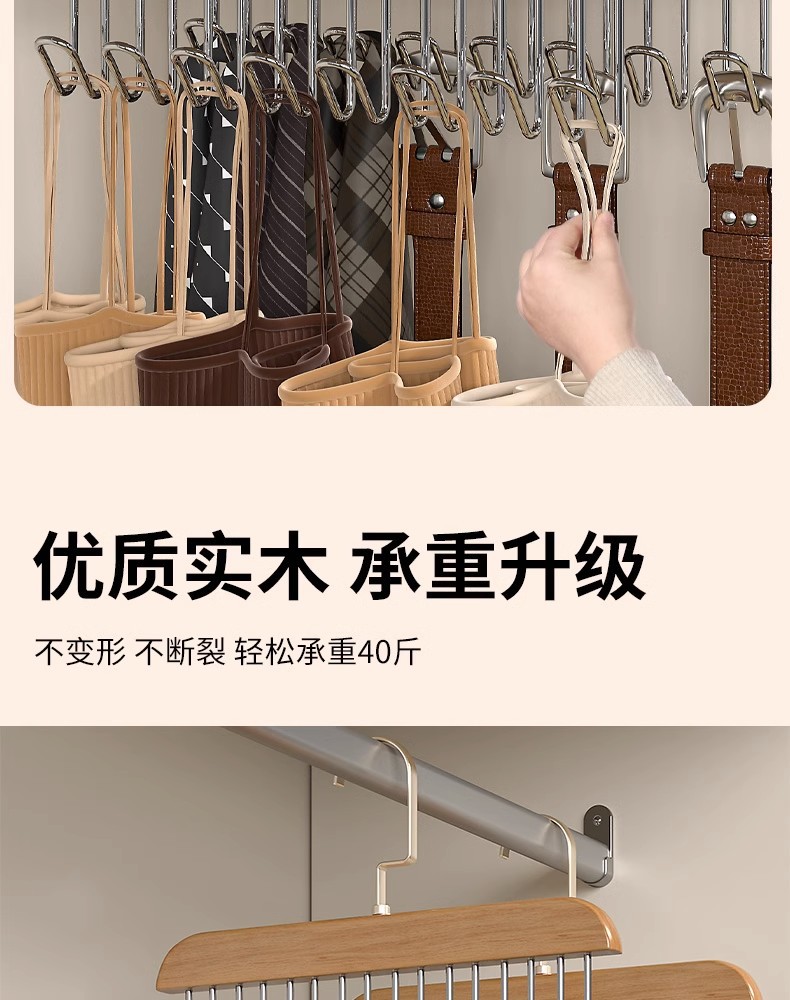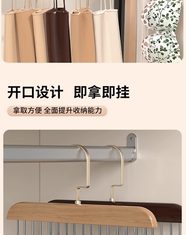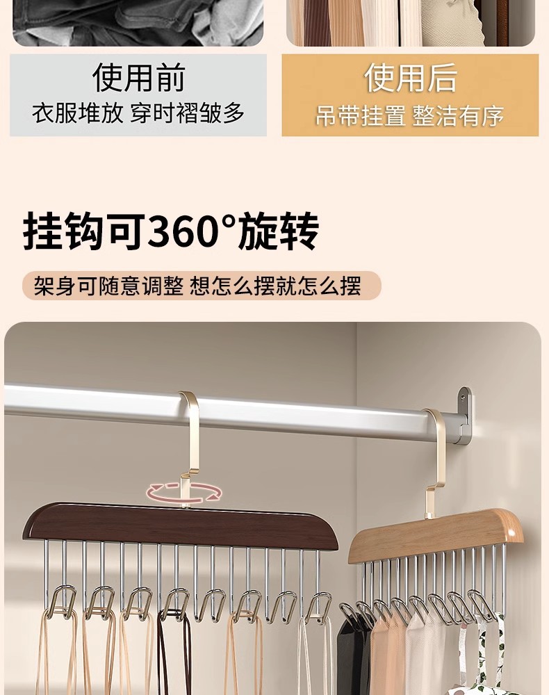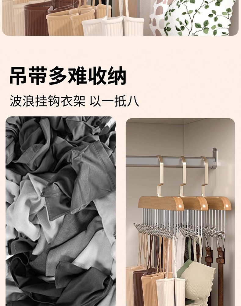 「9.9元包邮!拍2发3」木质吊带衣架 多功能内衣背心收纳整理居家日用宿舍实木挂钩波浪晾衣架