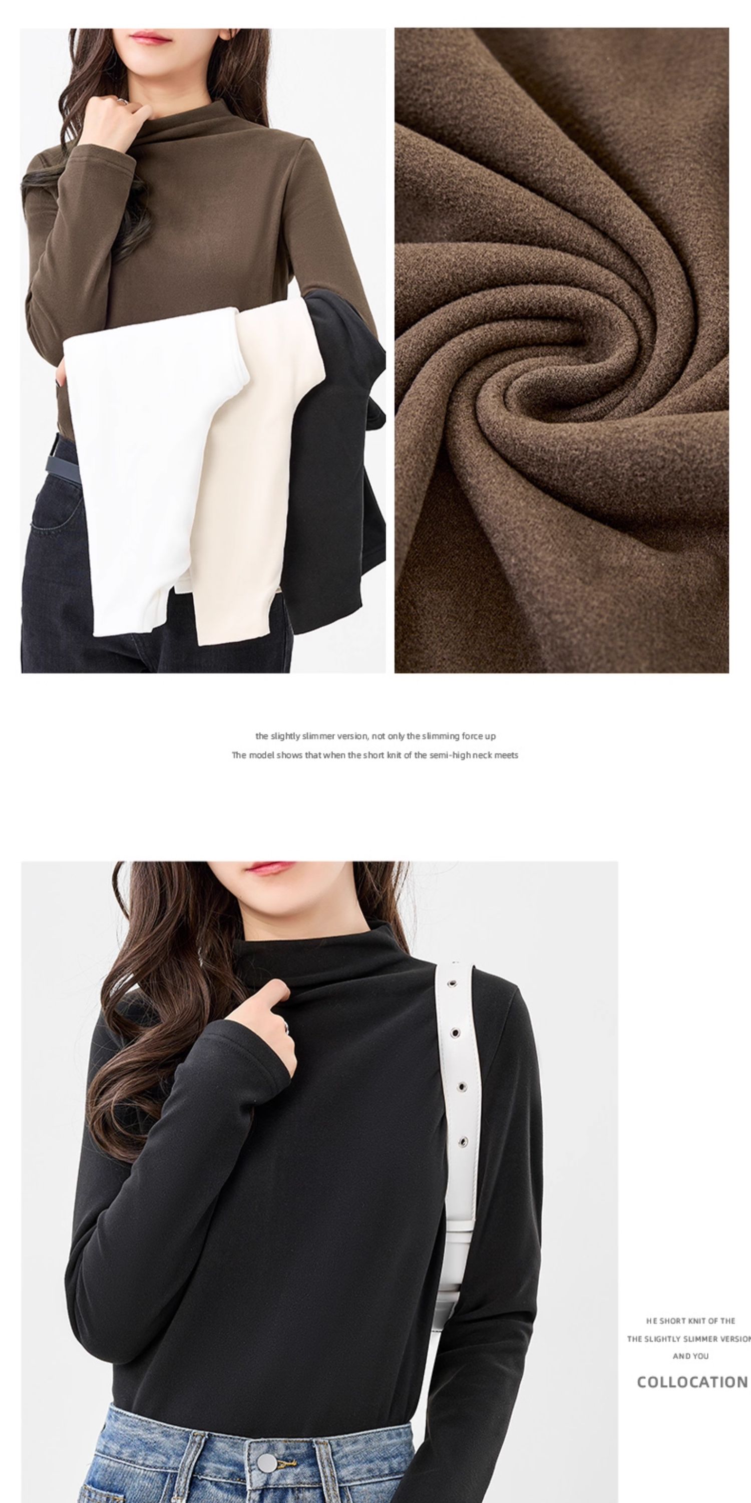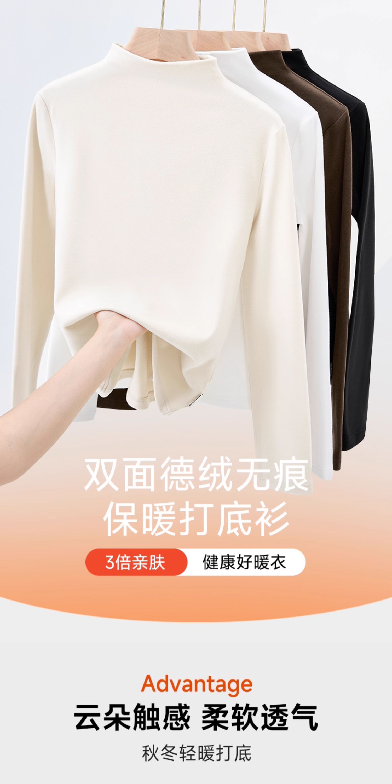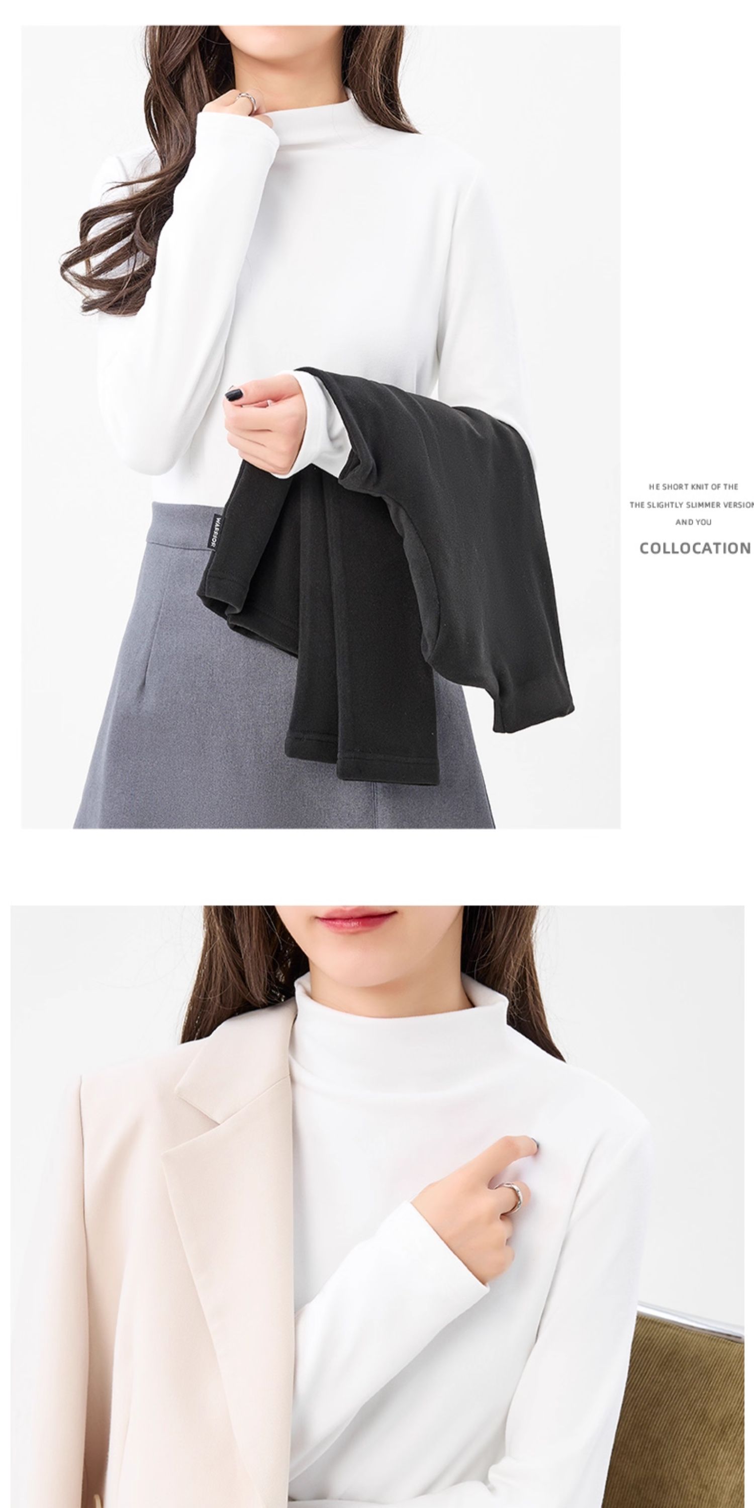 回力半高领打底衫女2024新款德绒黑色加绒内搭秋冬莫代尔长袖上衣