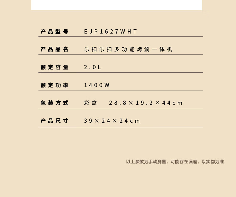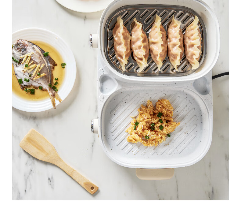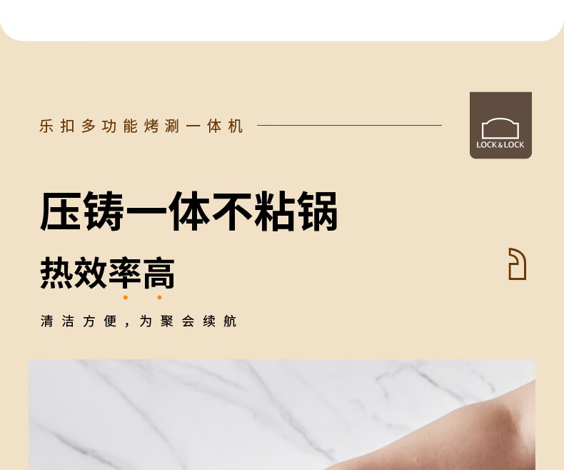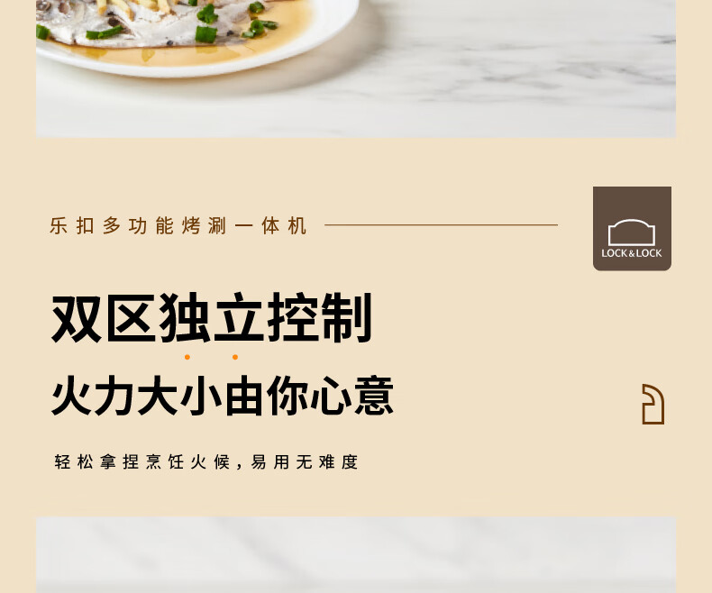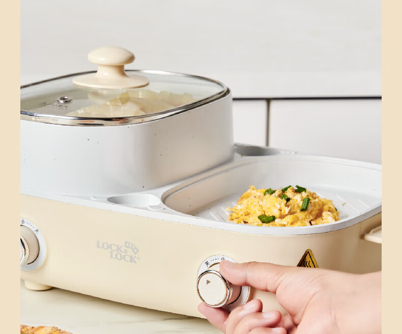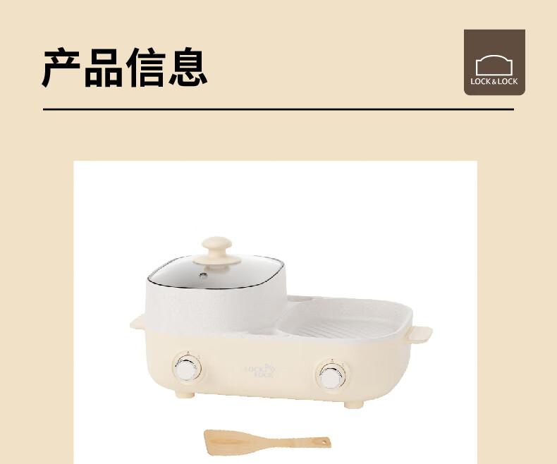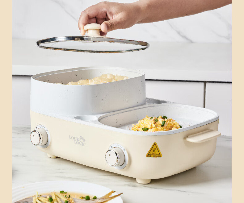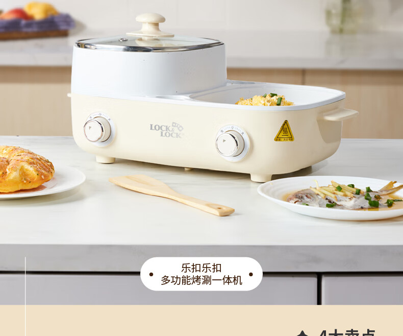 乐扣乐扣烤涮一体两用锅烤肉火锅一体家用涮烤烤肉锅一体多功能锅电烤炉烤串烤肉电烤盘电烧烤炉EJP1627WHT 白色 2L EJP1627WHT