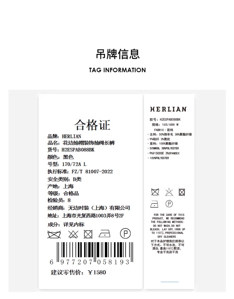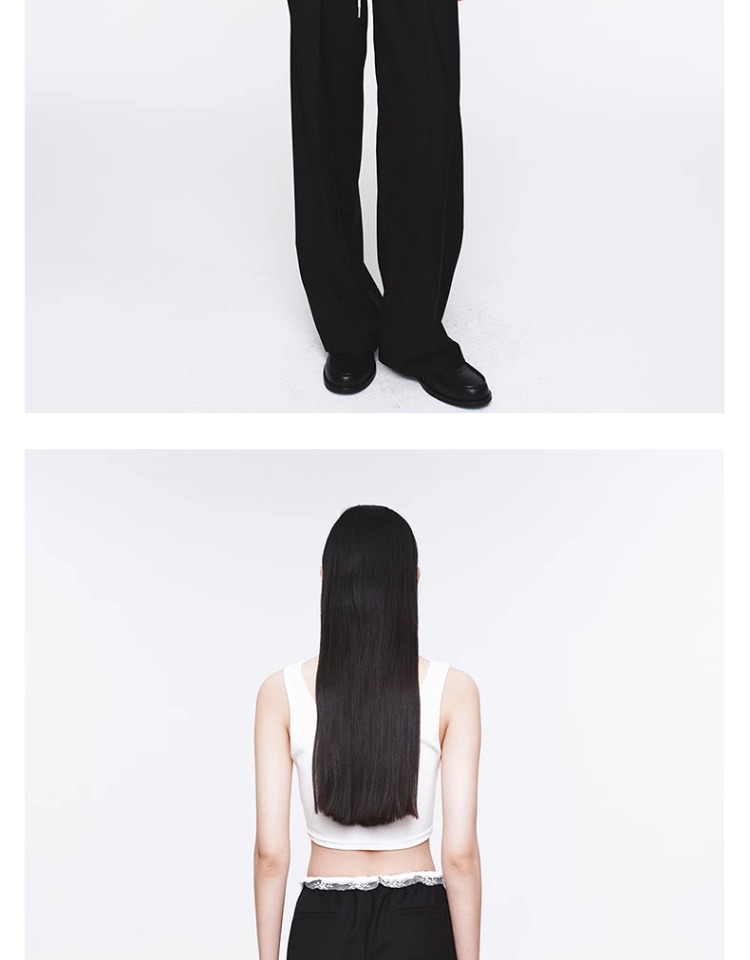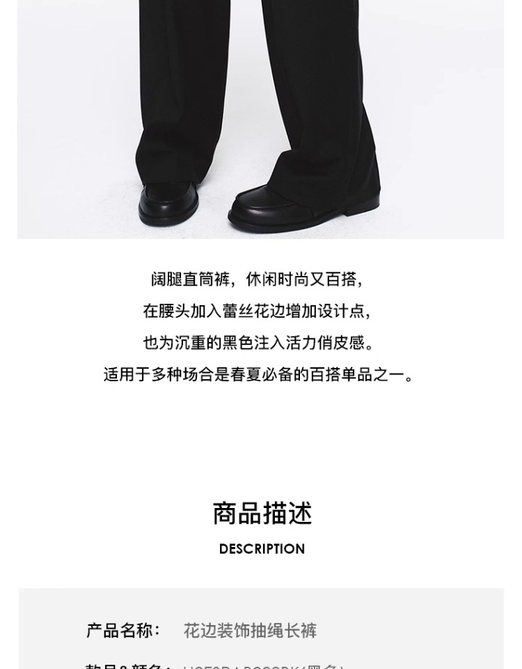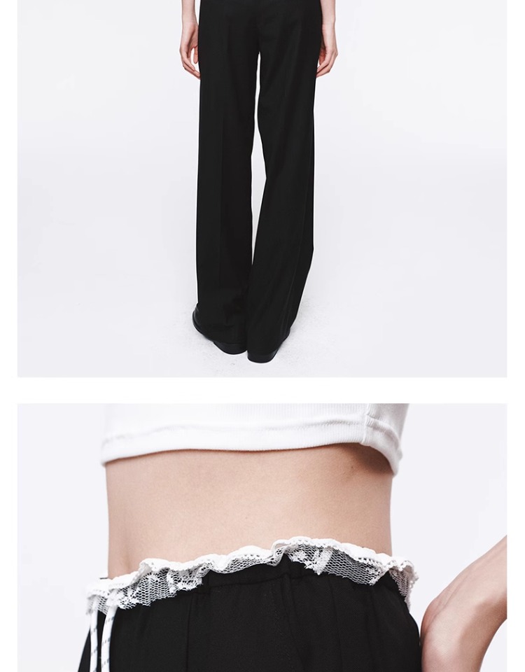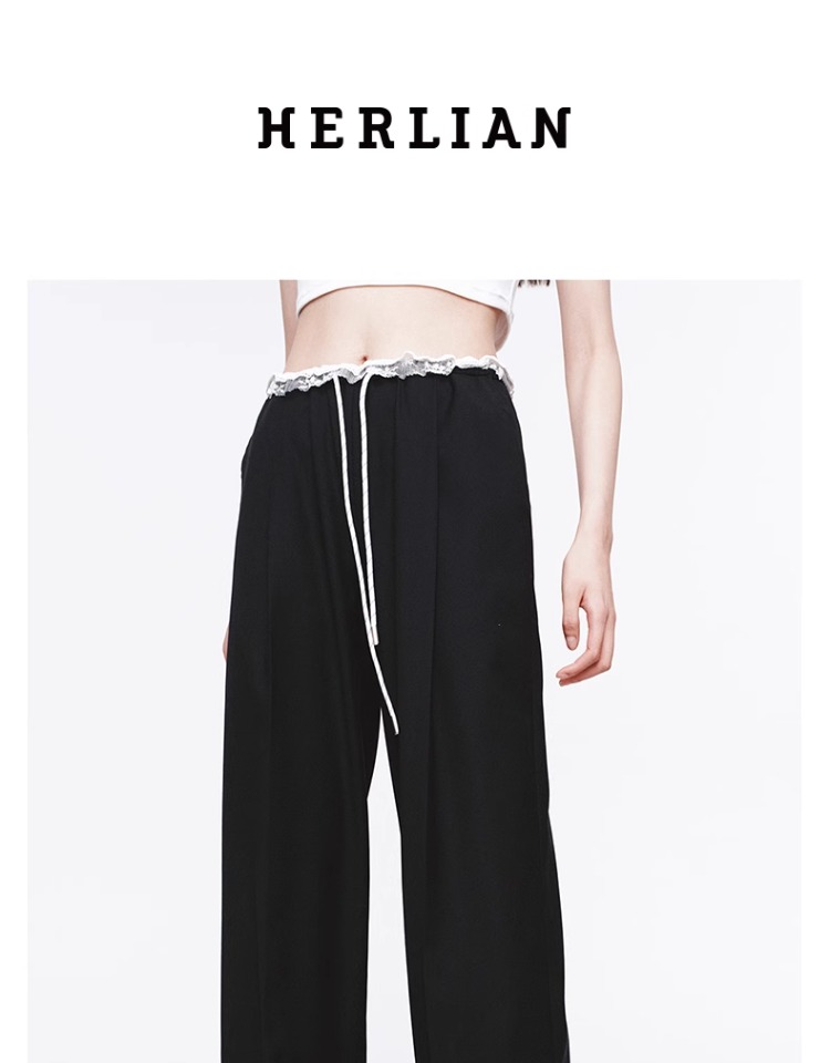HERLIAN 2025年春季女士花边装饰抽绳长裤