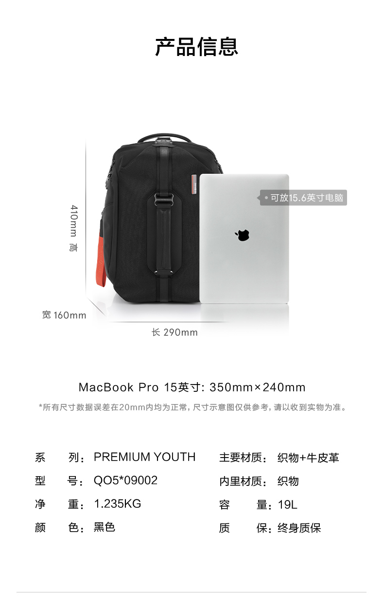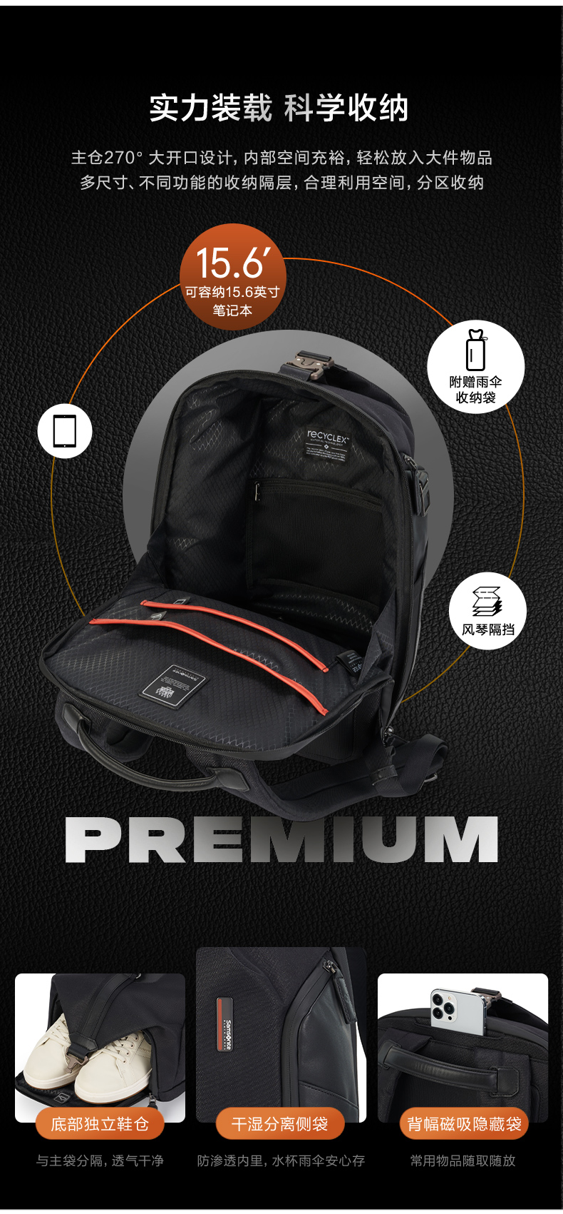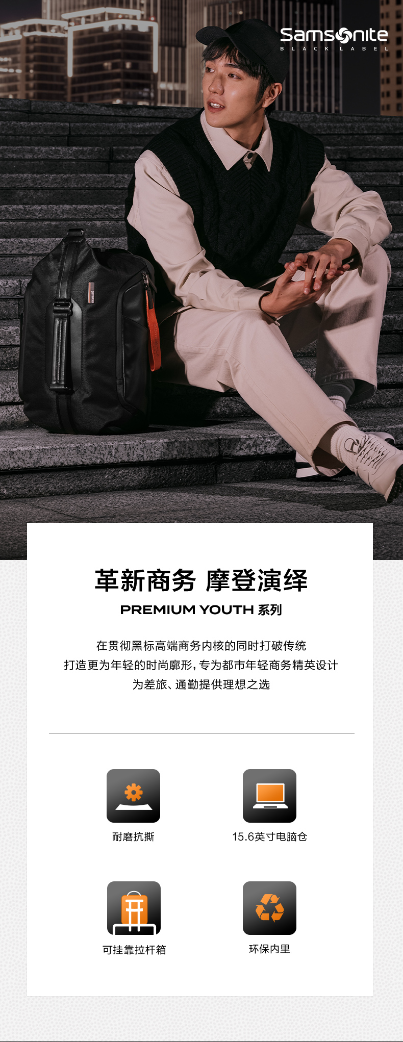新秀丽PREMIUM YOUTH黑标高端商务双肩包QO5*002