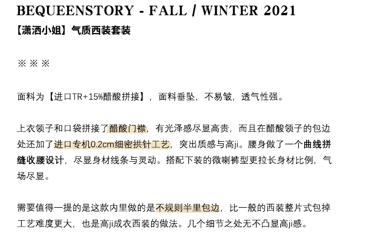 BeQueenStory 【潇洒小姐】时尚网红西装套装