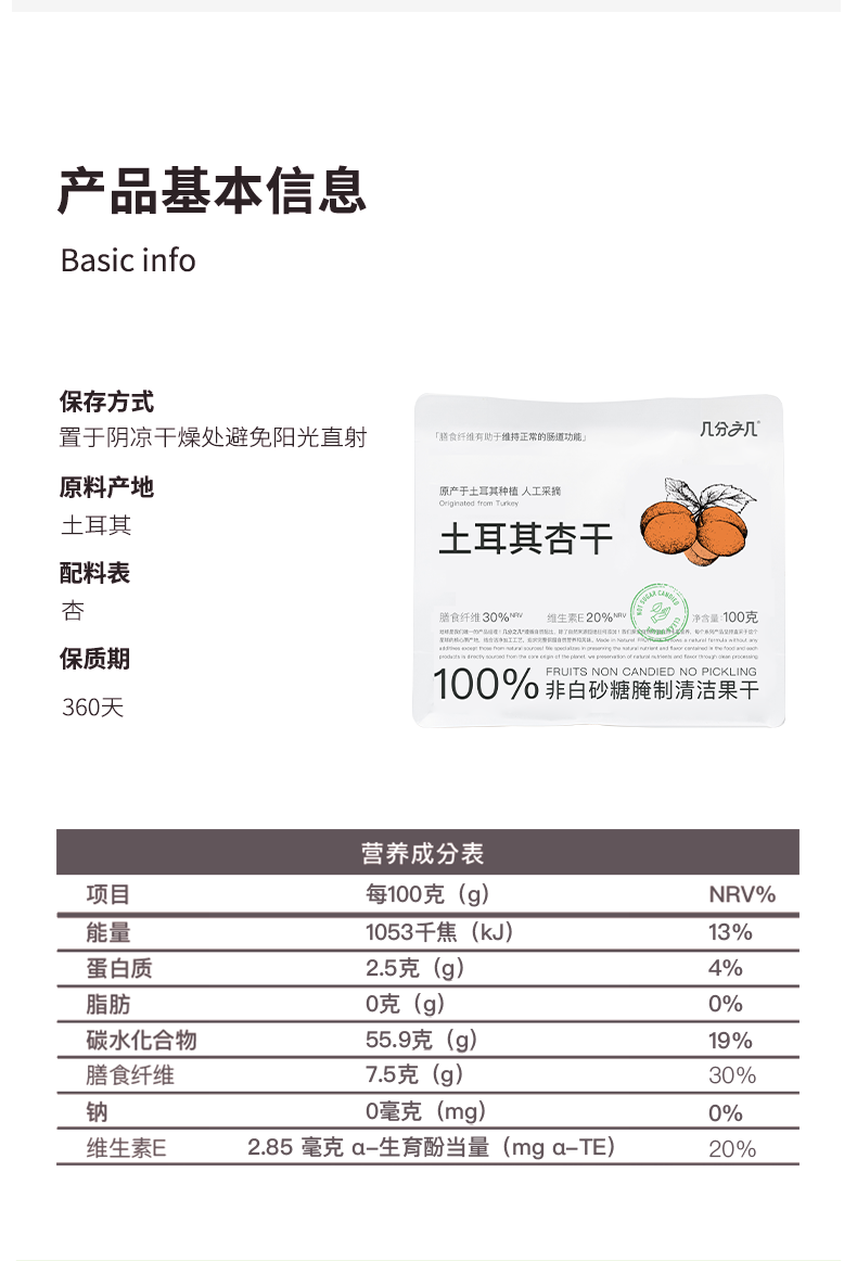 几分之几 土耳其无核杏干 100g*2