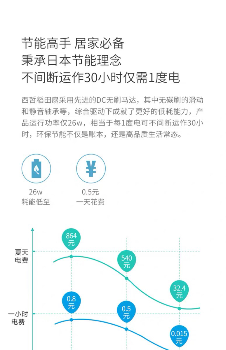 有的人会说我们家只开空调,不需要电风扇。那么,你真的需要打破你的传统思想了。现在的风扇跟老式电风扇完全不是一回事,现在更多的科技理念是改善空气,健康舒适,并且帮你省电费。空调对着人吹,室内温度不均衡,这样其实更费电,对人身体也是没有益处的。吹一夜空调或者吹一晚风扇都会让人头疼,关节不舒服,肩周炎,空调病,感冒发烧。为什么不用一台只要几百元的现在科技来改变它?特别是老人,小孩,远离空调病,远离关节炎!还有一个可以提到的优点,声音不大。跟一些国内老牌风扇比,声音小了好多。