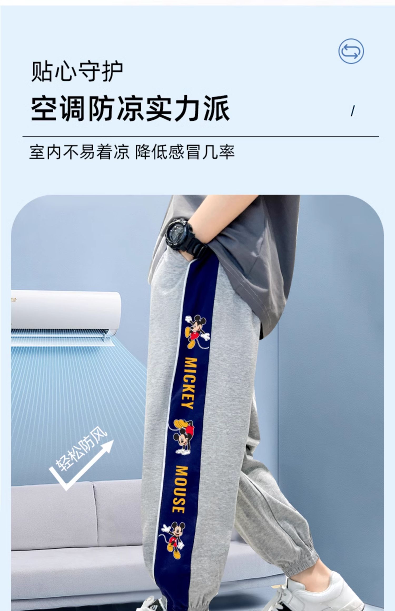 唯品迪士尼女童春秋款元青拼阔腿裤
