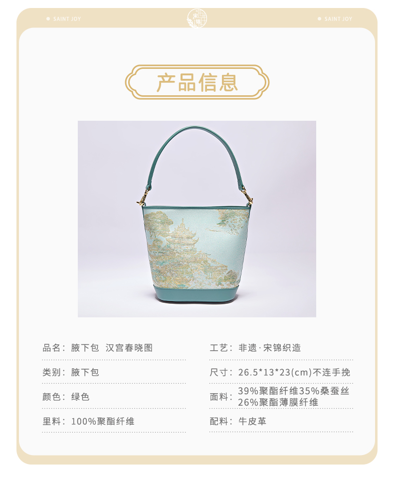 上久楷SAINTJOY/上久楷 宋锦腋下包 汉宫春晓图 BWS25A0701