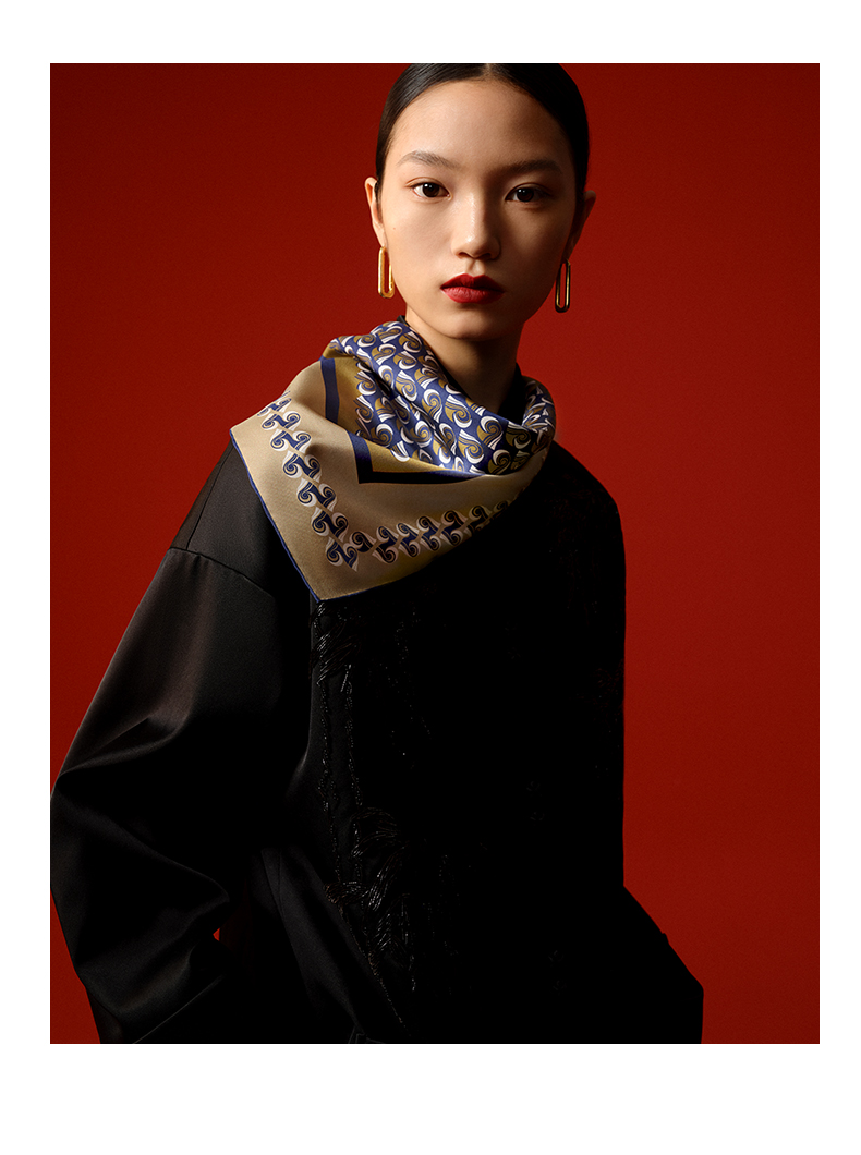 凤凰之家“昭霞序”63厘米双面印花真丝中方巾
