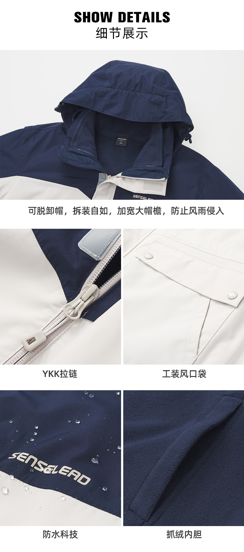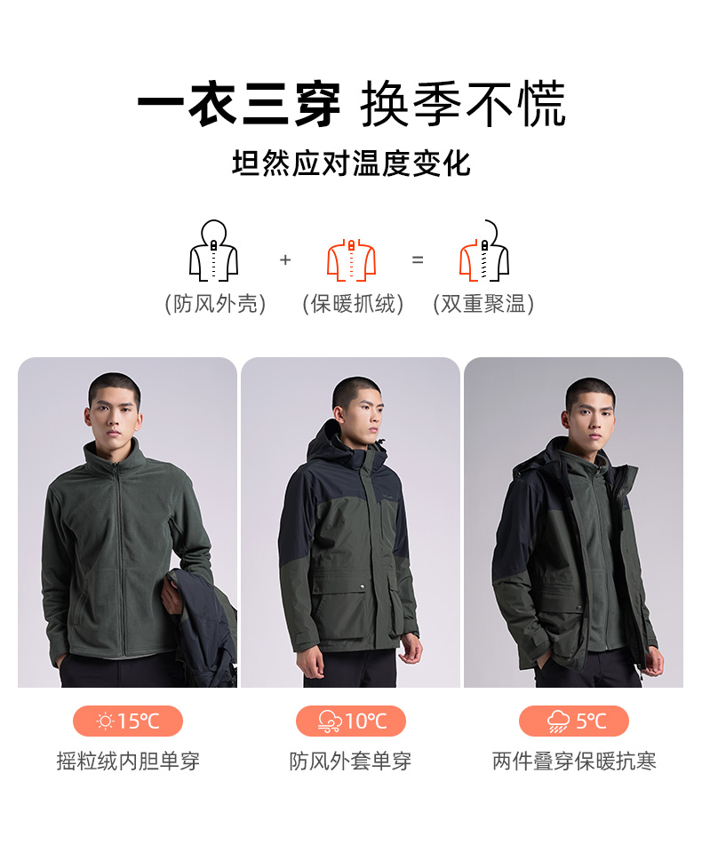 Senselead|男式套绒冲锋衣 SSAWJ910319