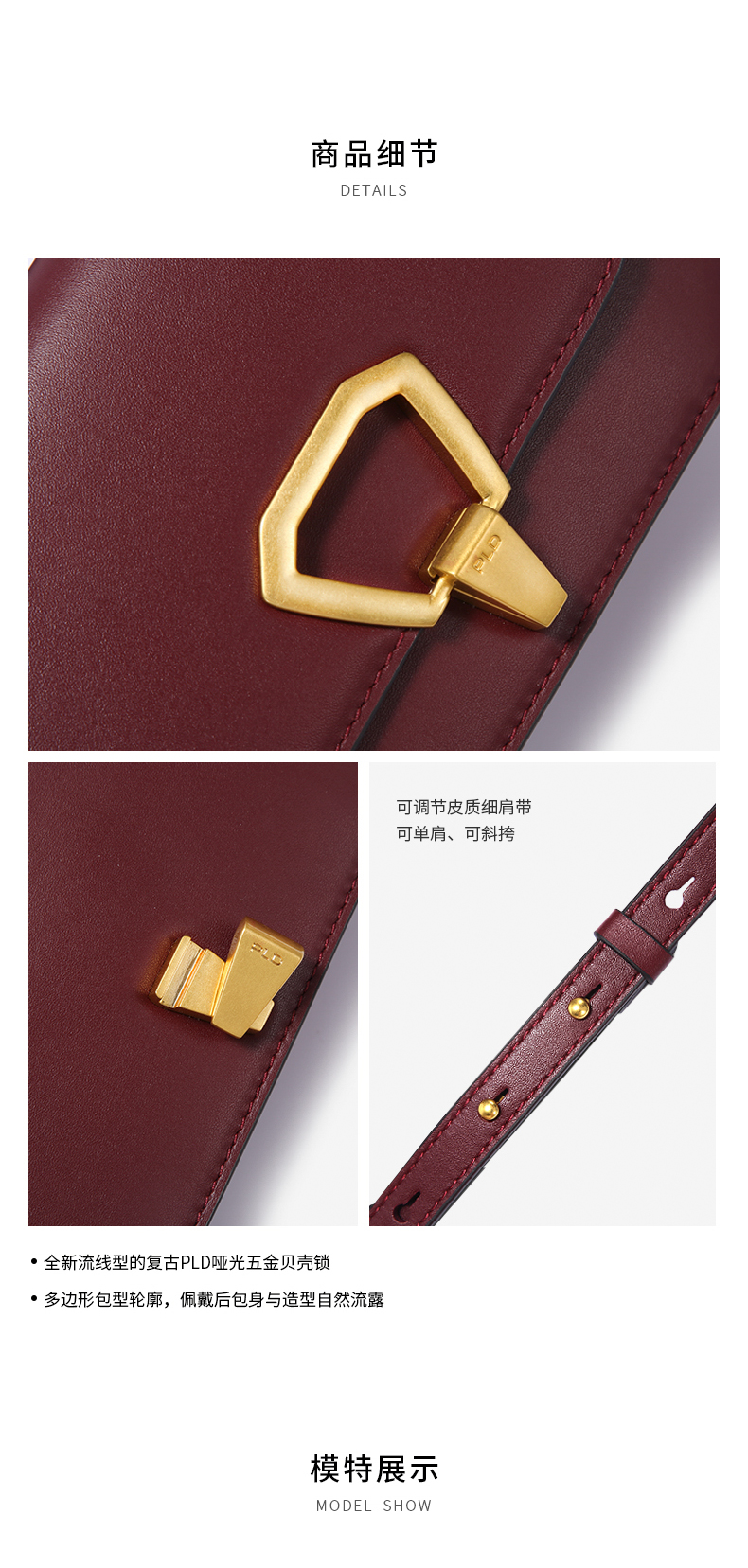 保兰德PLD东方雅奢贝壳系列腋下斜挎女包小方包头层牛皮通勤通勤必备女包