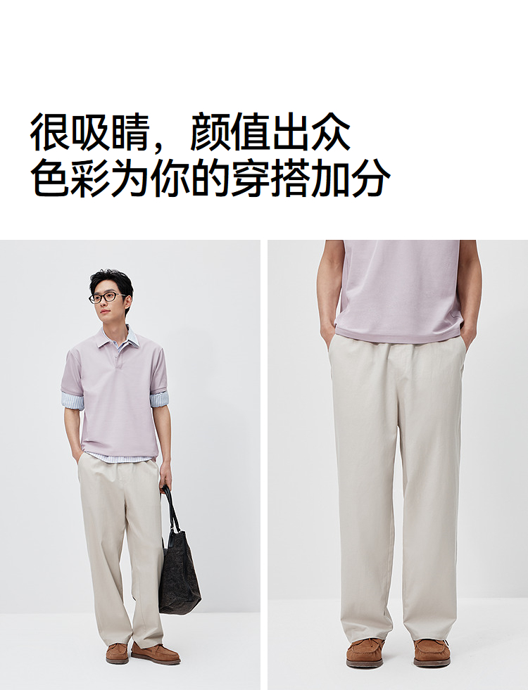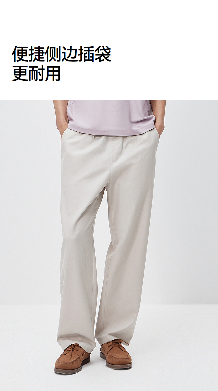 森马休闲裤男夏季舒适宽松直筒裤子2026新款纯色棉麻弹力斜纹长裤