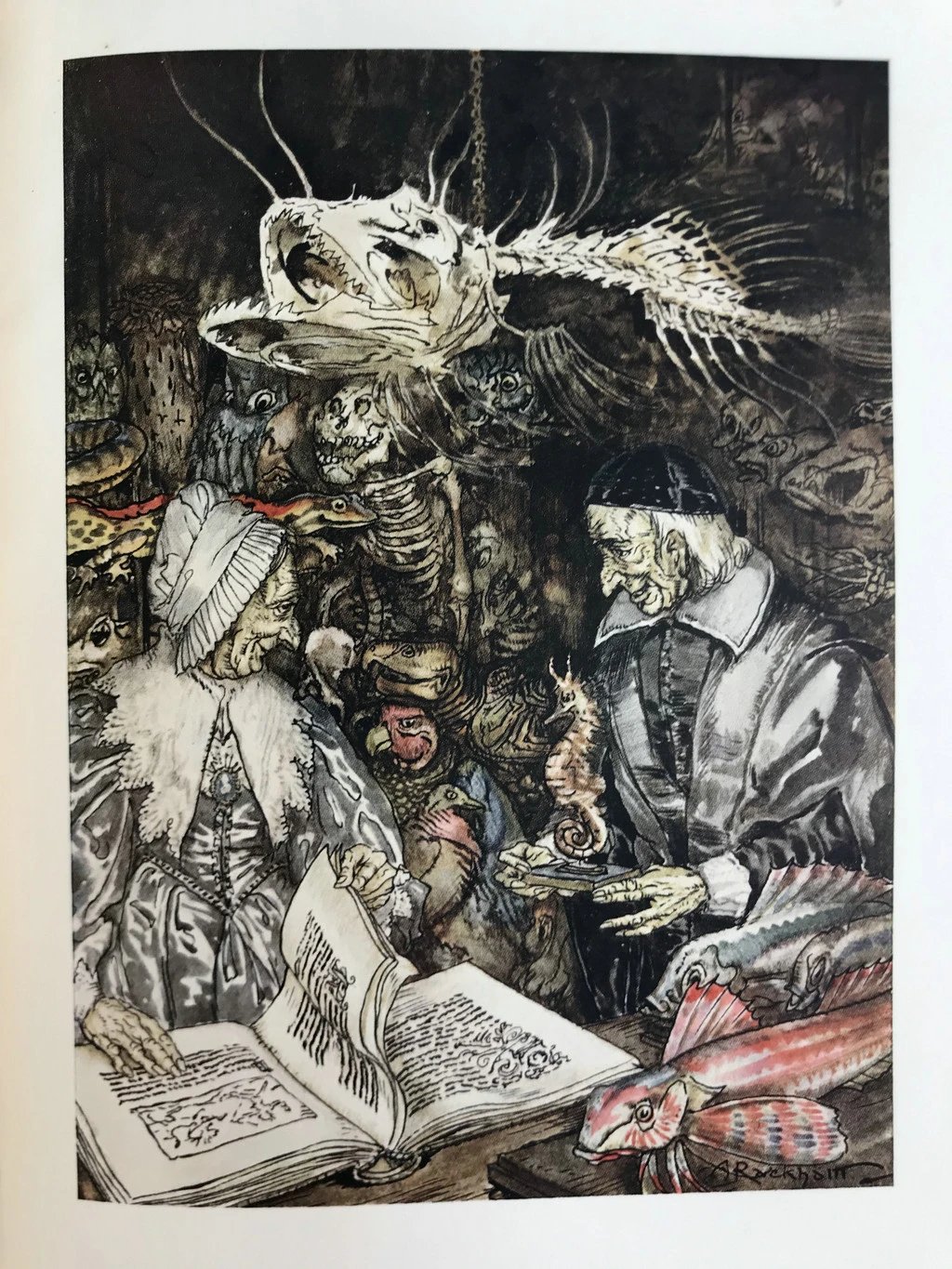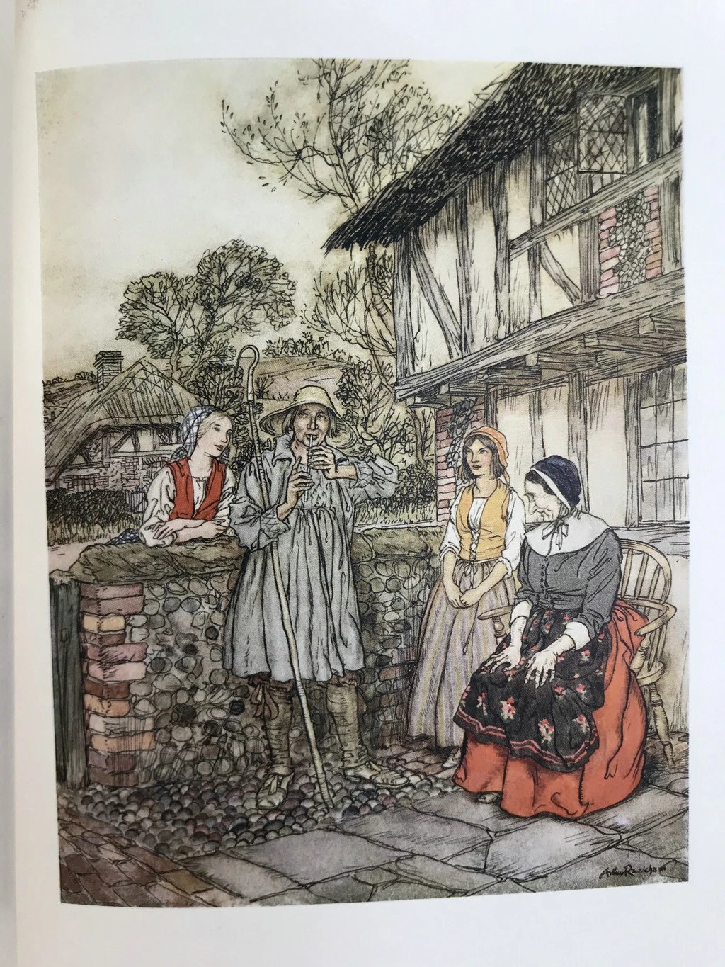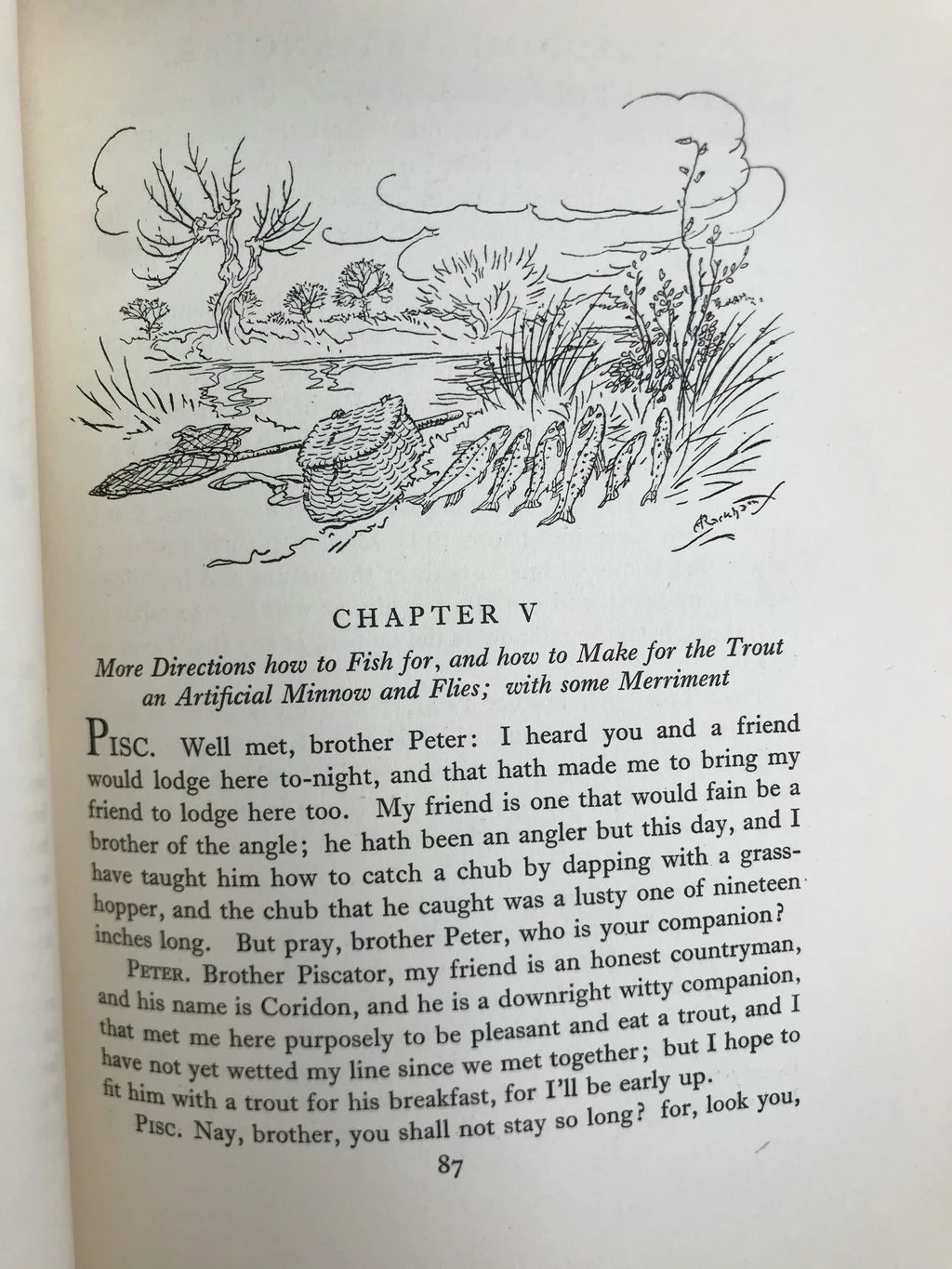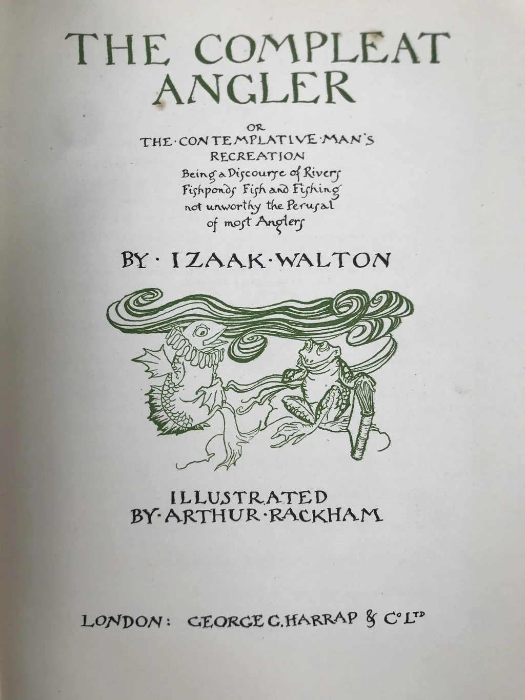 鬼才拉克姆12幅彩色手工贴图!1931年 沃尔顿《钓客清话》 漆布精装16开