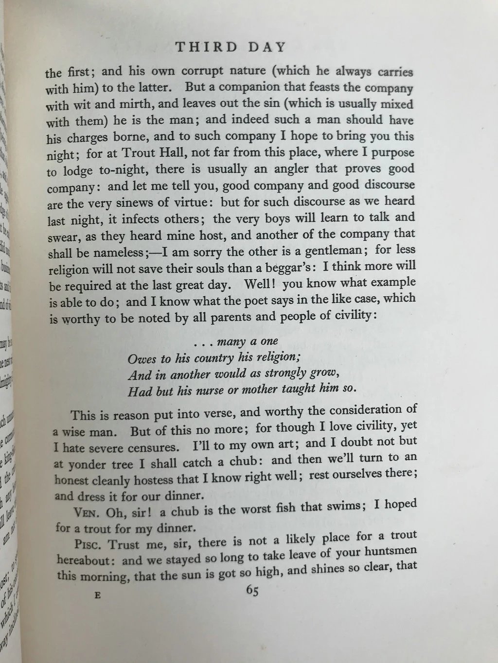 《钓客清话》是17世纪英国作家艾萨克·沃尔顿创作的哲学散文作品,初版于1653年。全书以垂钓为叙事主线,采用对话体形式探讨人与自然的共生关系,提倡简单、忍耐、知足等生活理念。作品共21章,内容涵盖鱼类习性、垂钓技艺及水域生态观察,借渔人与猎者的辩论传递简朴生活的价值。行文风格清新闲淡,融合诗歌、民谣及生态伦理论述,辅以1840年“约翰·梅杰版”自然史风格插图。书中将垂钓升华为精神修行,兼具实用知识与文化沉思,呈现17世纪英伦乡村风情及早期博物学写作特征。