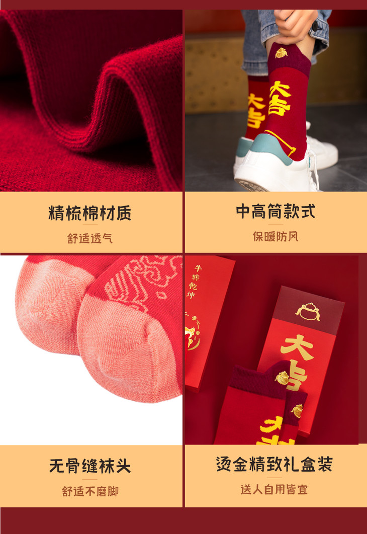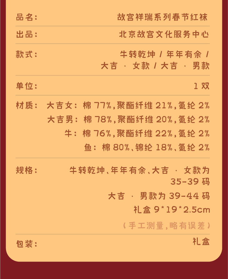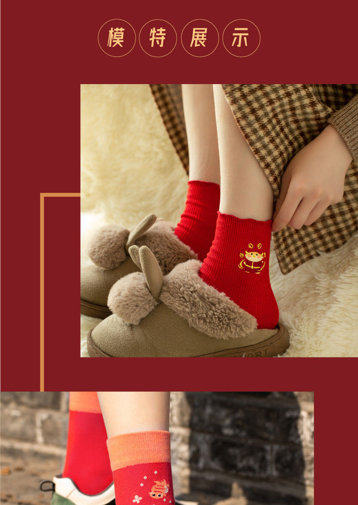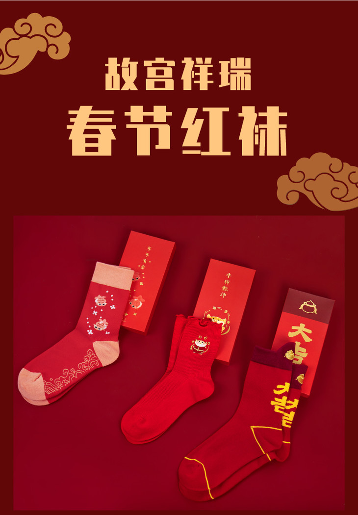 【故宫袜子】祥瑞系列本命年红袜子男女中筒