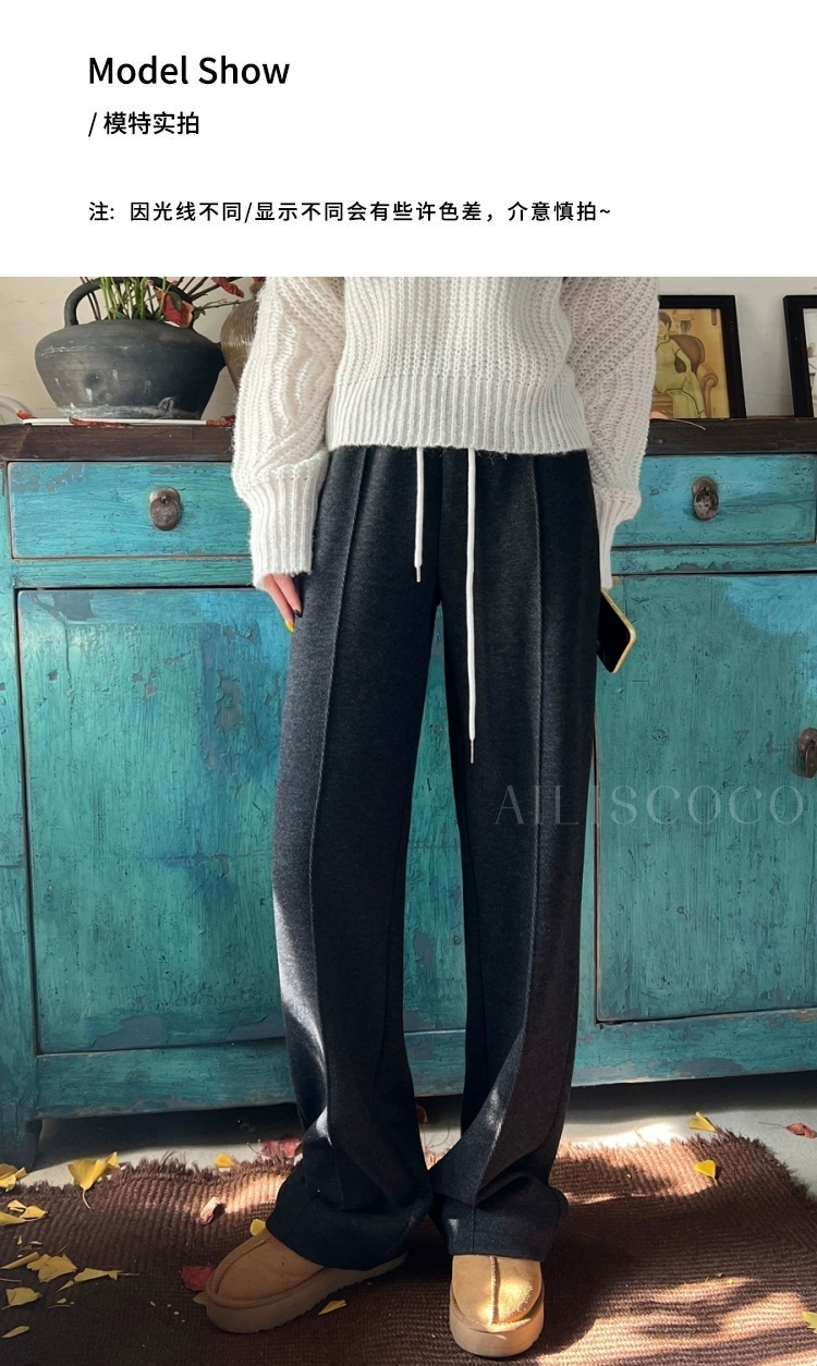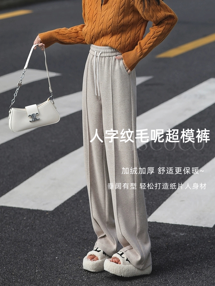 垂阔有型 秋冬也要做“纸片人”【人字纹毛呢超模裤】仿羊绒面料加绒加厚 高腰设计抬高身材比例 显高显瘦