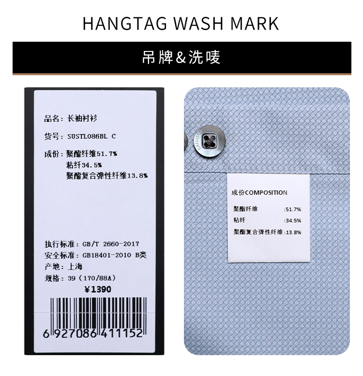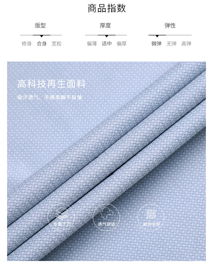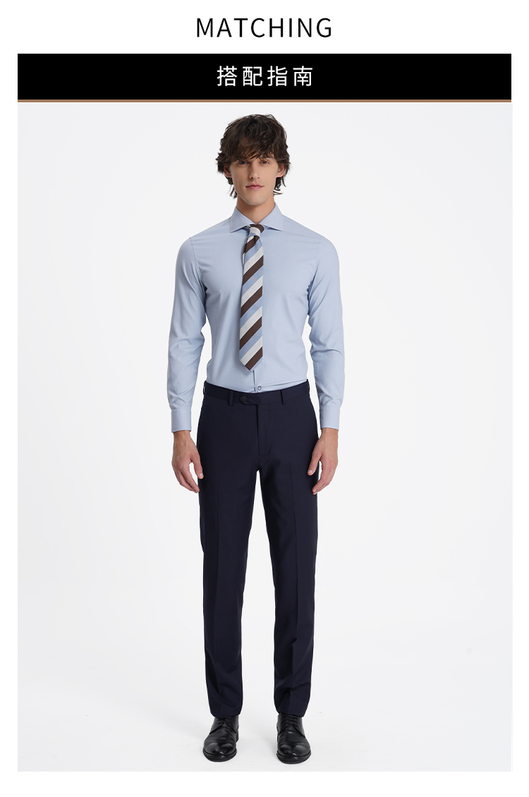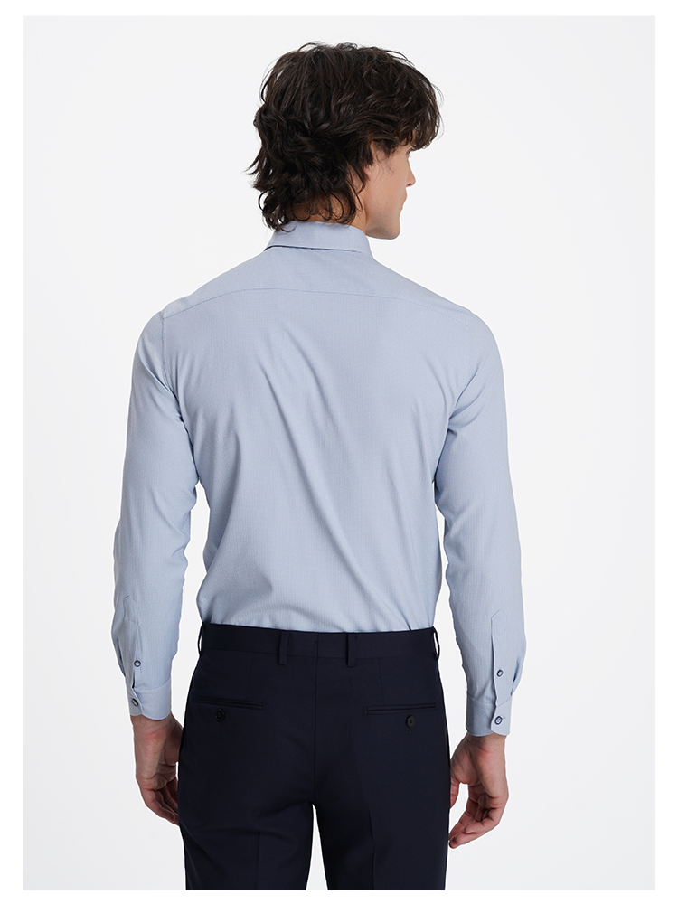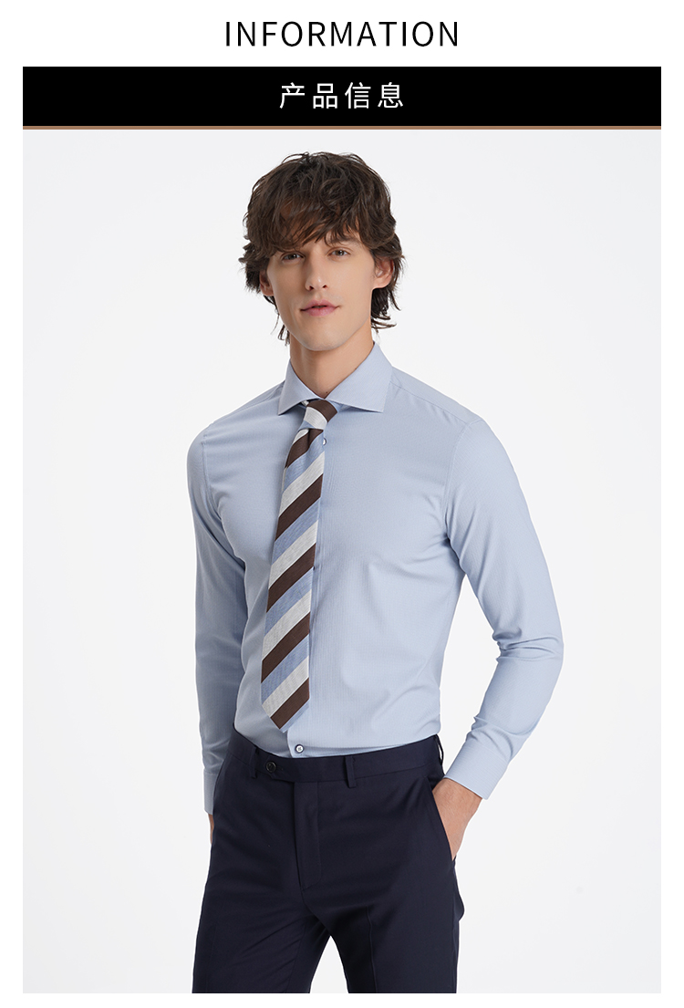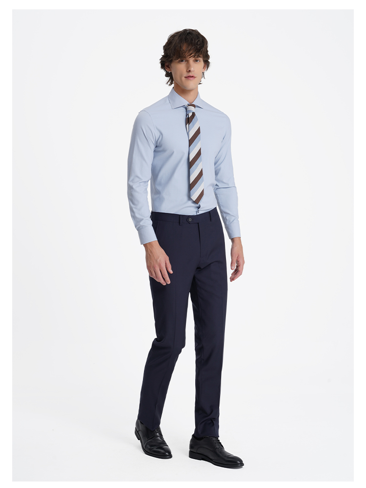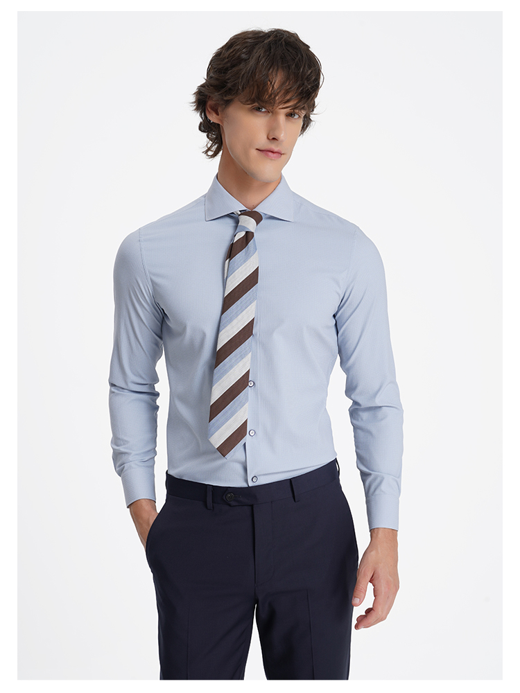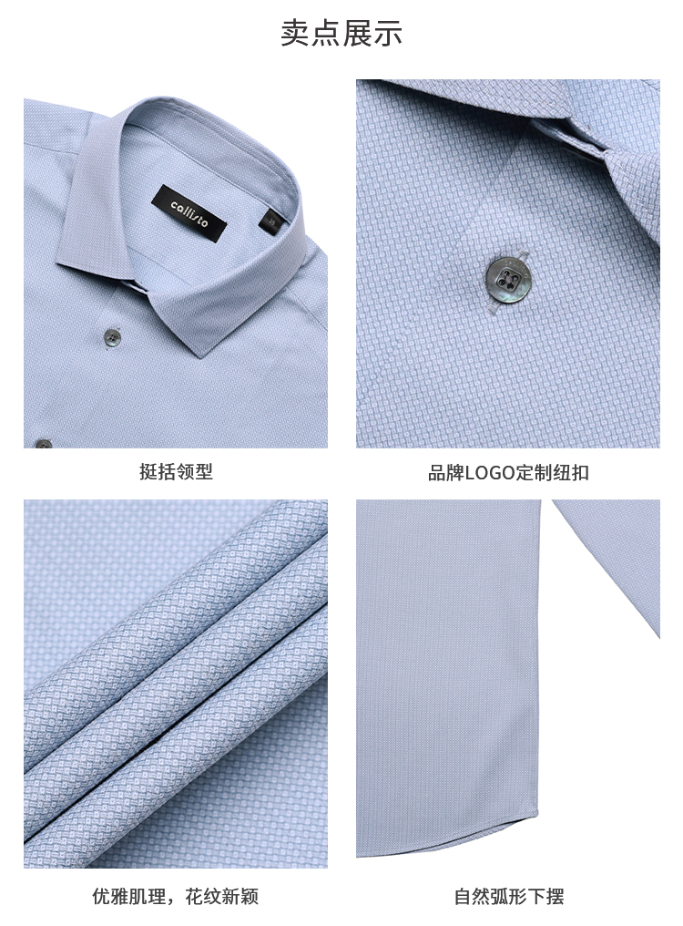 callisto高阶商务系列蓝色弹力聚酯纤维混纺长袖衬衫
