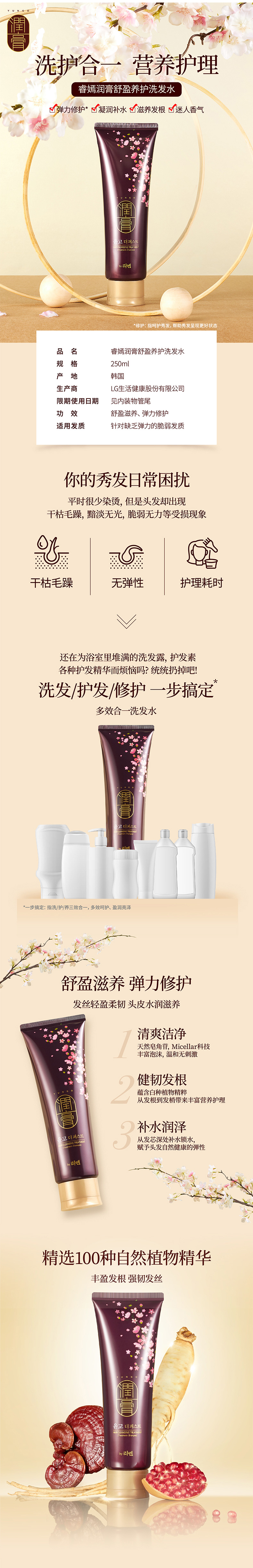 LG睿嫣润膏舒盈滋养洗发水 洗护二合一(紫)250ml*2