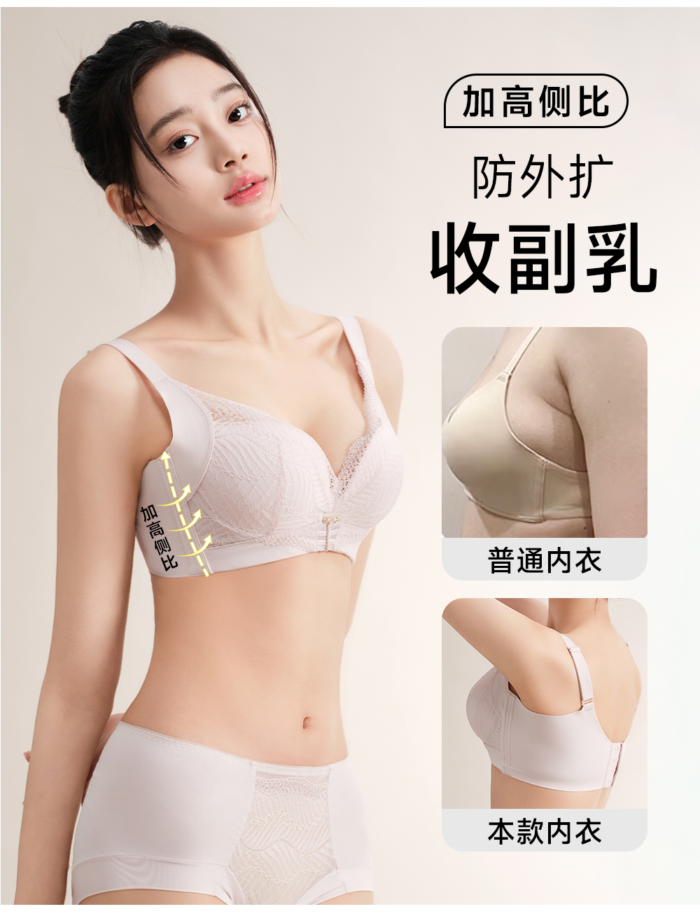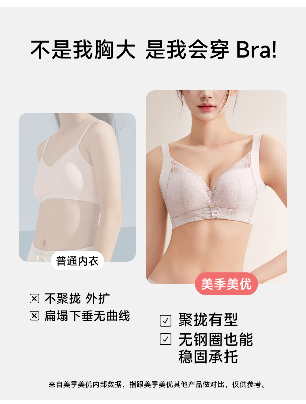 美季美优内衣文胸2024新款网纱拼接光面大胸显小胸罩