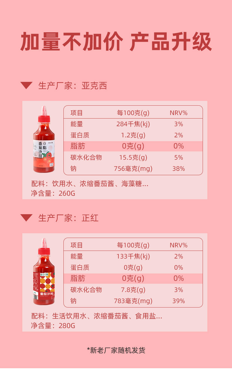 昔日印象番茄酱0脂肪挤压瓶装沙拉酱组合番茄沙司小包装家用商用