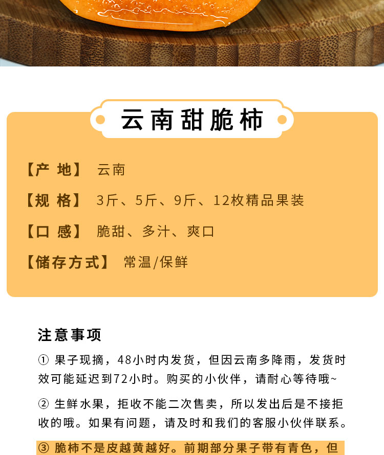 (素食星球)云南保山新鲜脆柿 甜脆多汁 口感清甜 多规格精 品