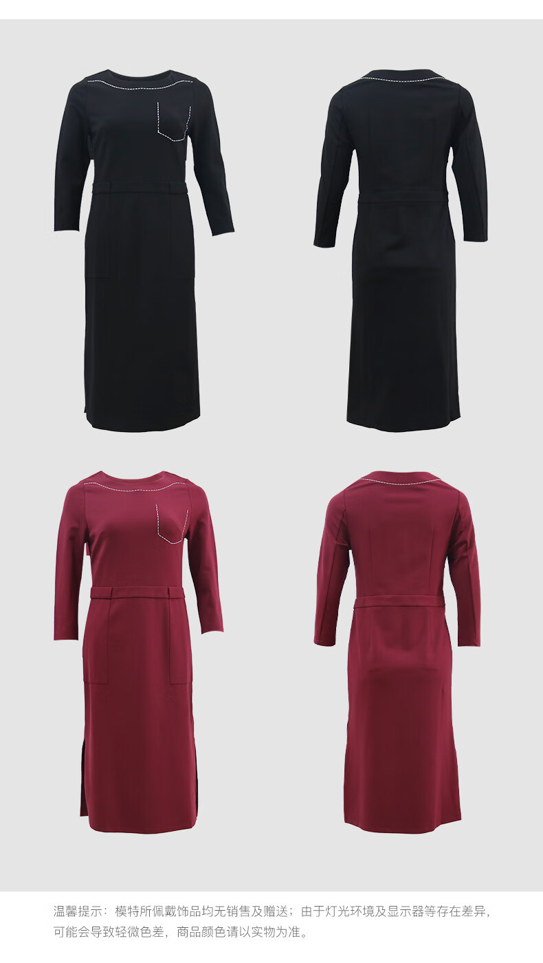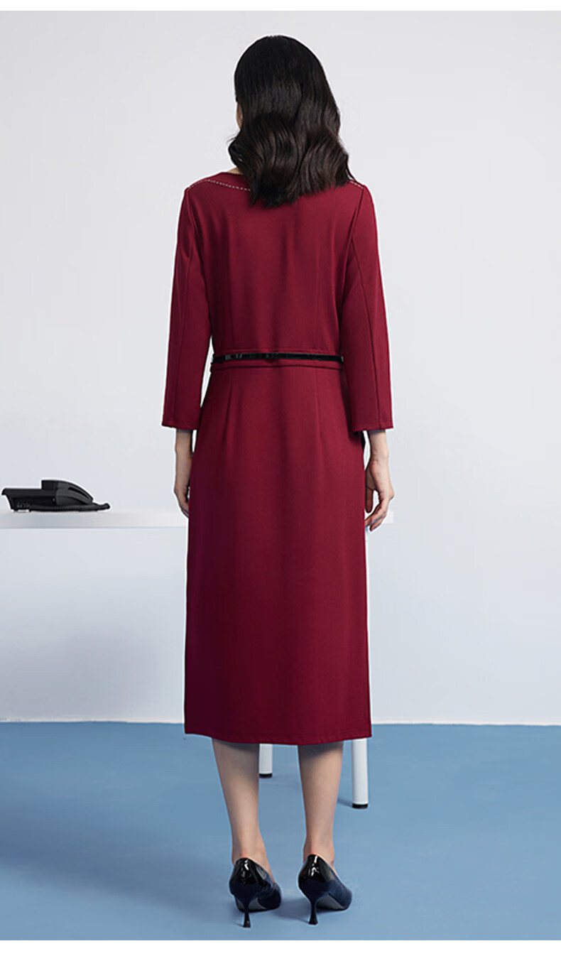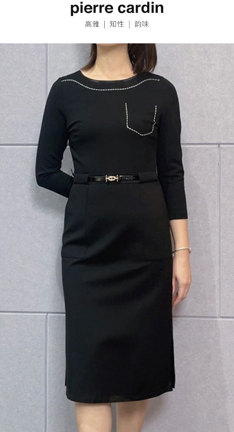 皮尔卡丹女装2024春夏新款黑色红色简约通勤风连衣裙C42DL30