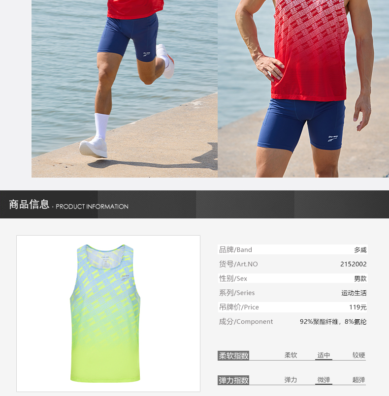 多威跑吧背心男夏季新款运动背心透气无袖T恤2152002