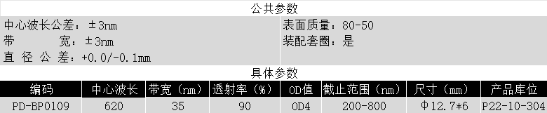 BP620/35K OD4@200-800 T>90% Φ12.7*6 带通滤光片 (带套圈)