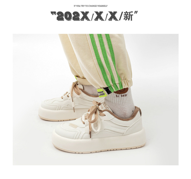「加绒款!皮面软底」小白鞋女2023秋冬新款厚底二棉鞋休闲运动保暖板鞋子 商品图2