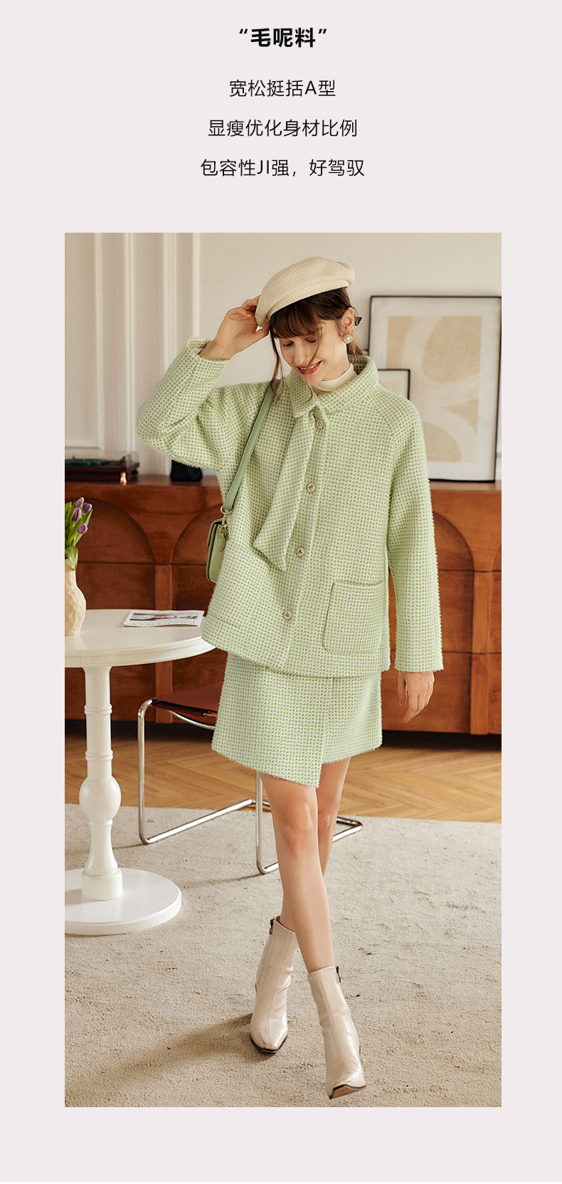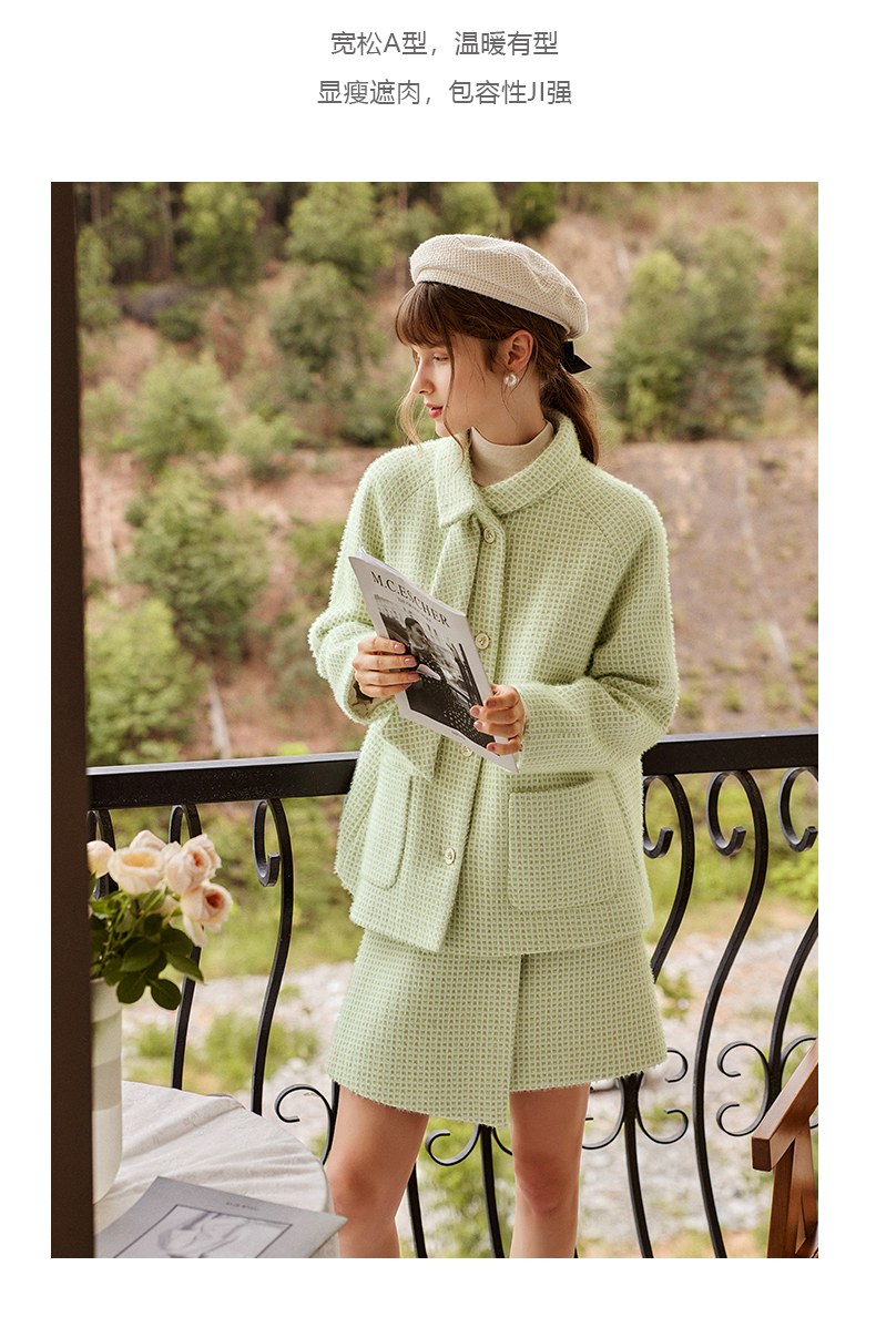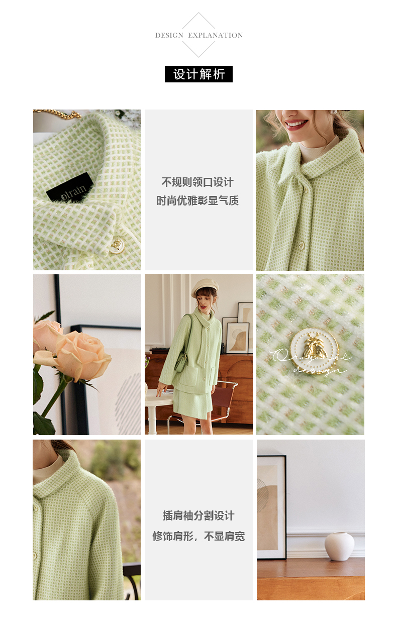欧芮儿气质格纹毛呢外套时尚优雅