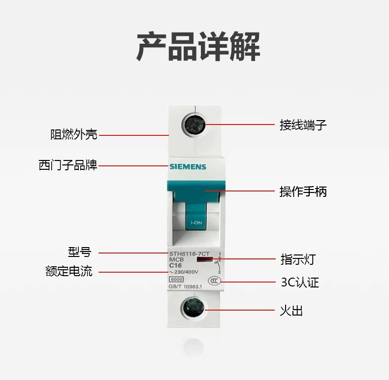 西门子空开断路器总开线路保护器1P/1P+N/2P/4P总闸